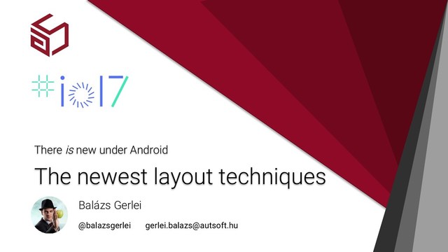 My presentation about new Android layouts and Data Binding from Google I/O Extended 2017 Budapest.