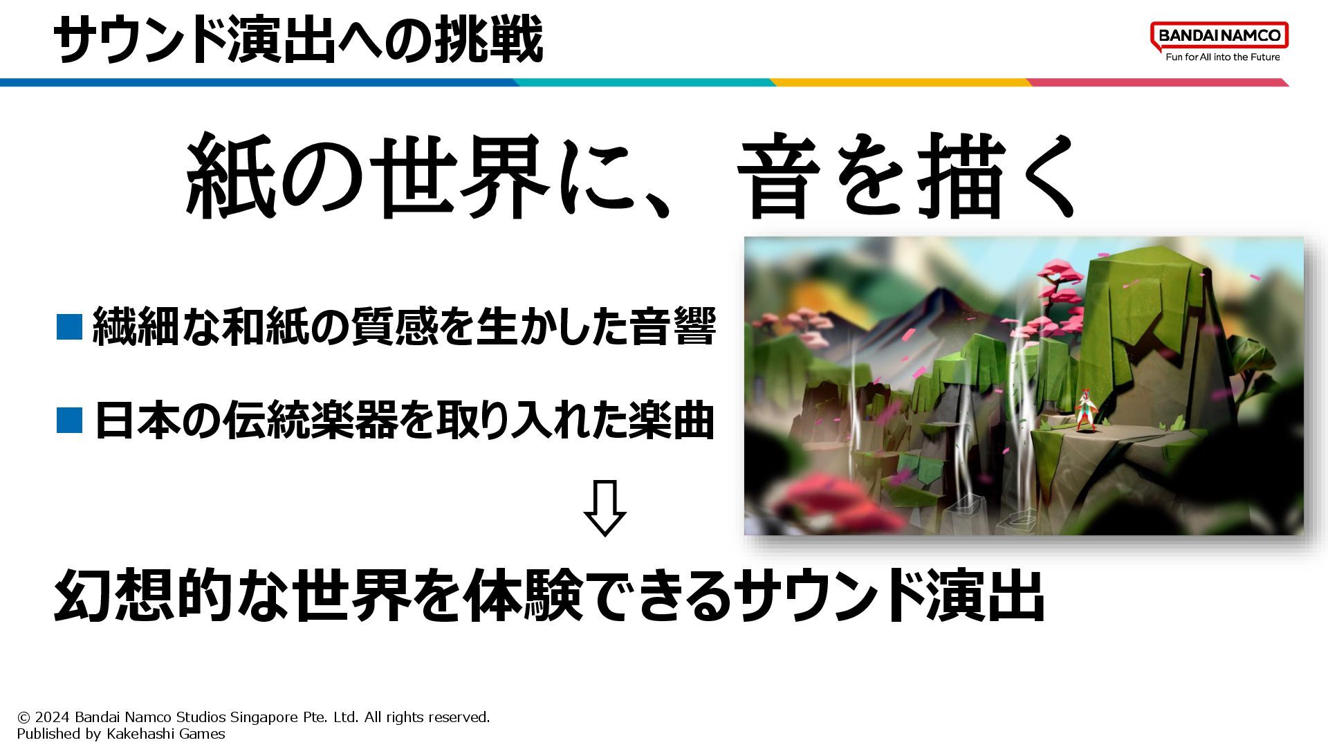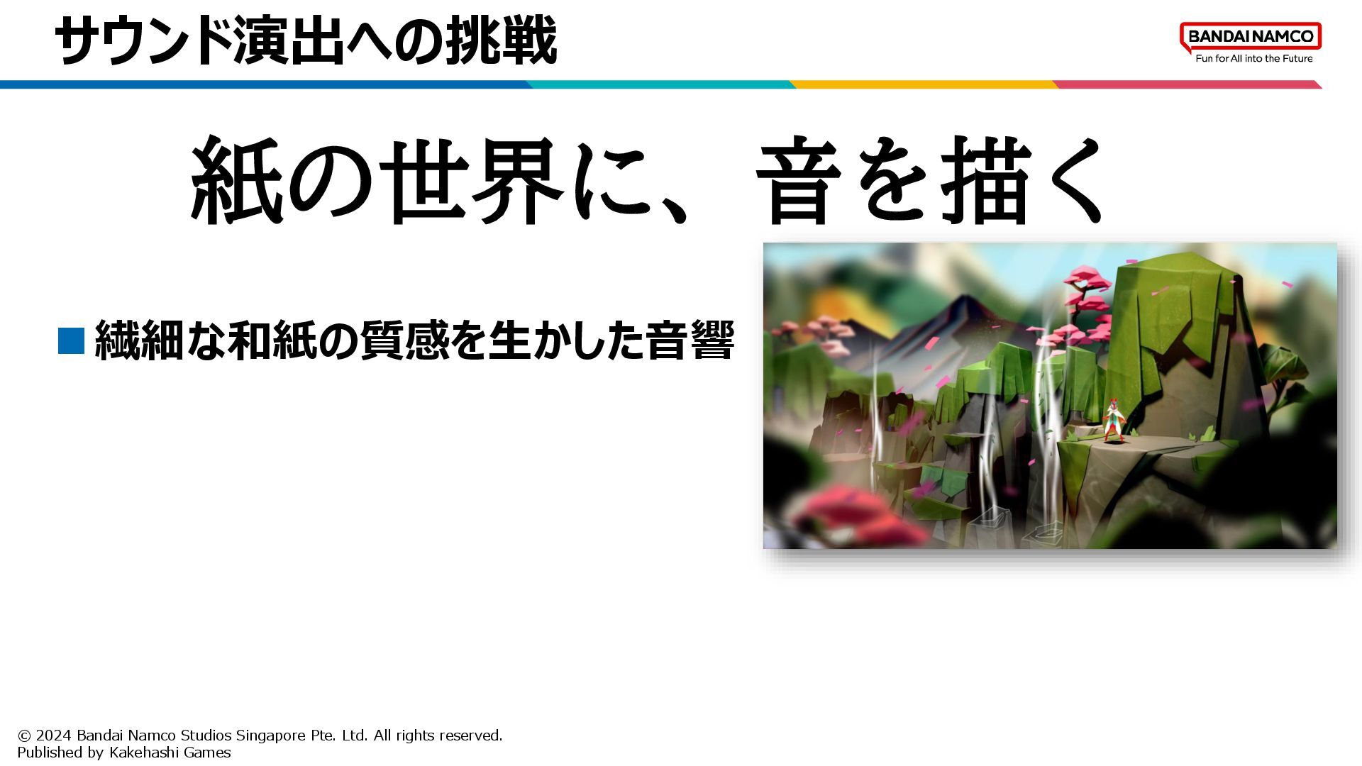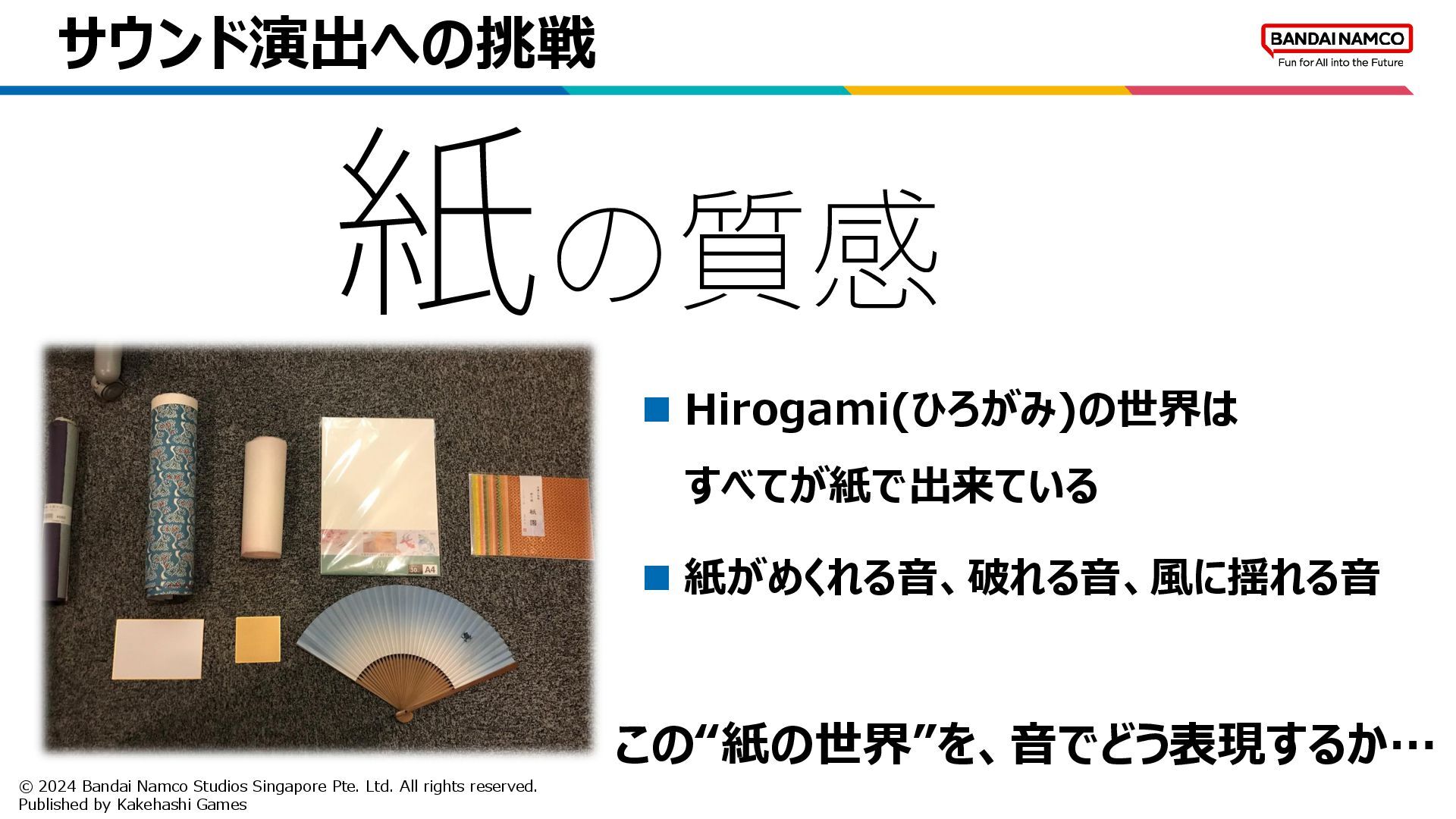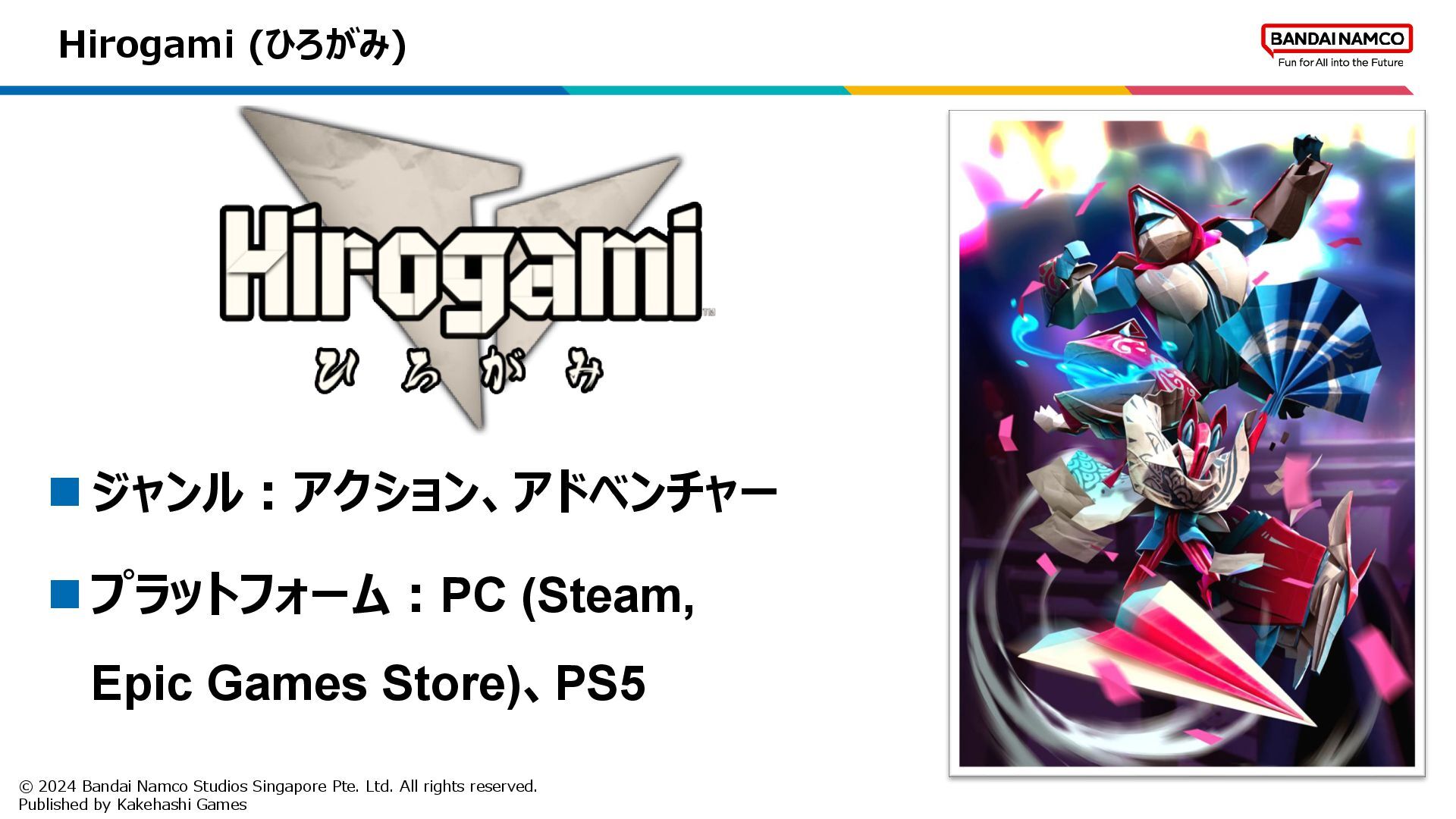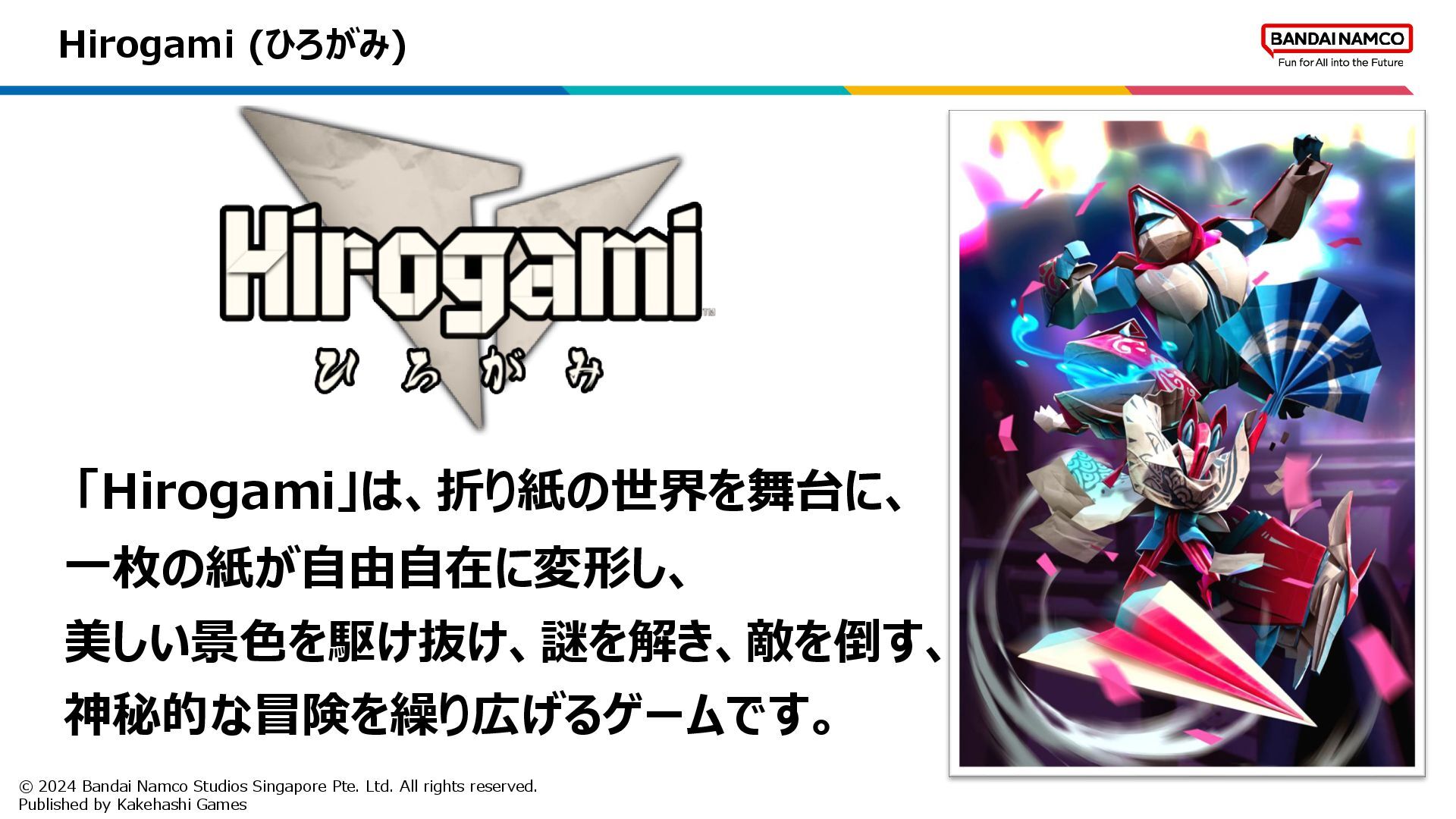 「Hirogami」は、折り紙の世界を舞台に、一枚の紙が自由自在に変形し、美しい景色を駆け抜け、謎を解き、敵を倒す、神秘的な冒険を繰り広げるゲームです。繊細な和紙の質感を生かした音響と日本の伝統色を取り入れた楽曲で、幻想的な世界を体験できます。