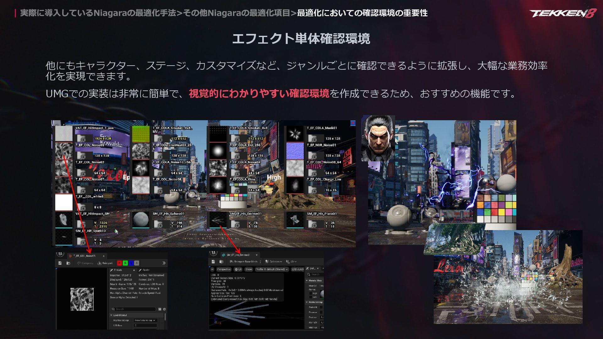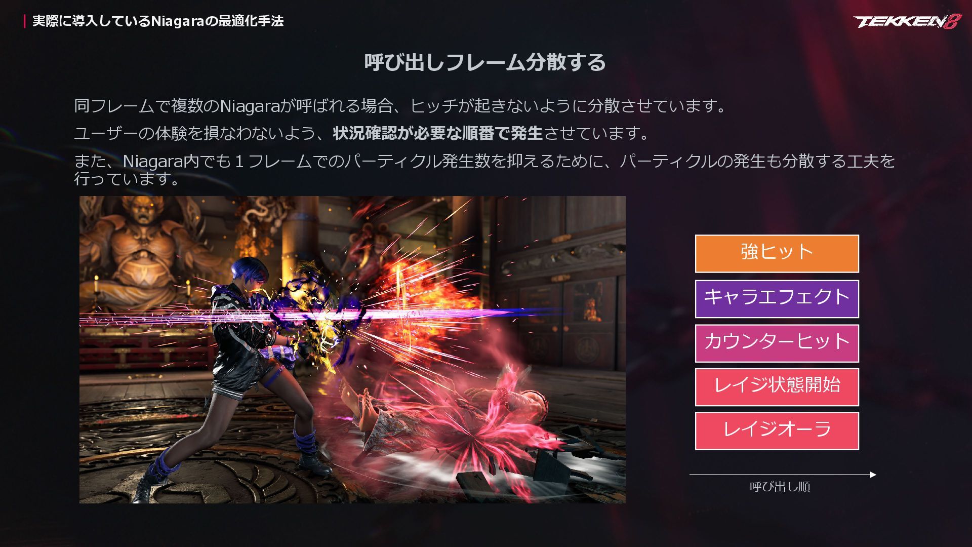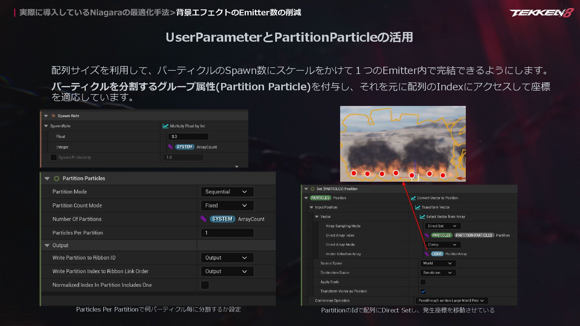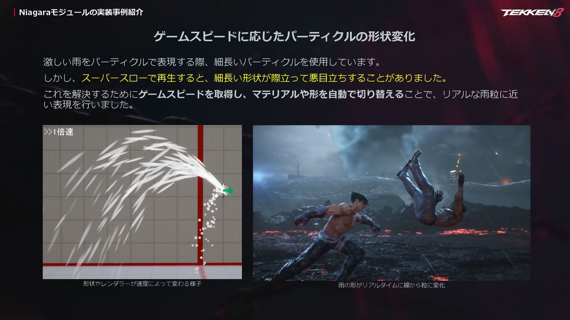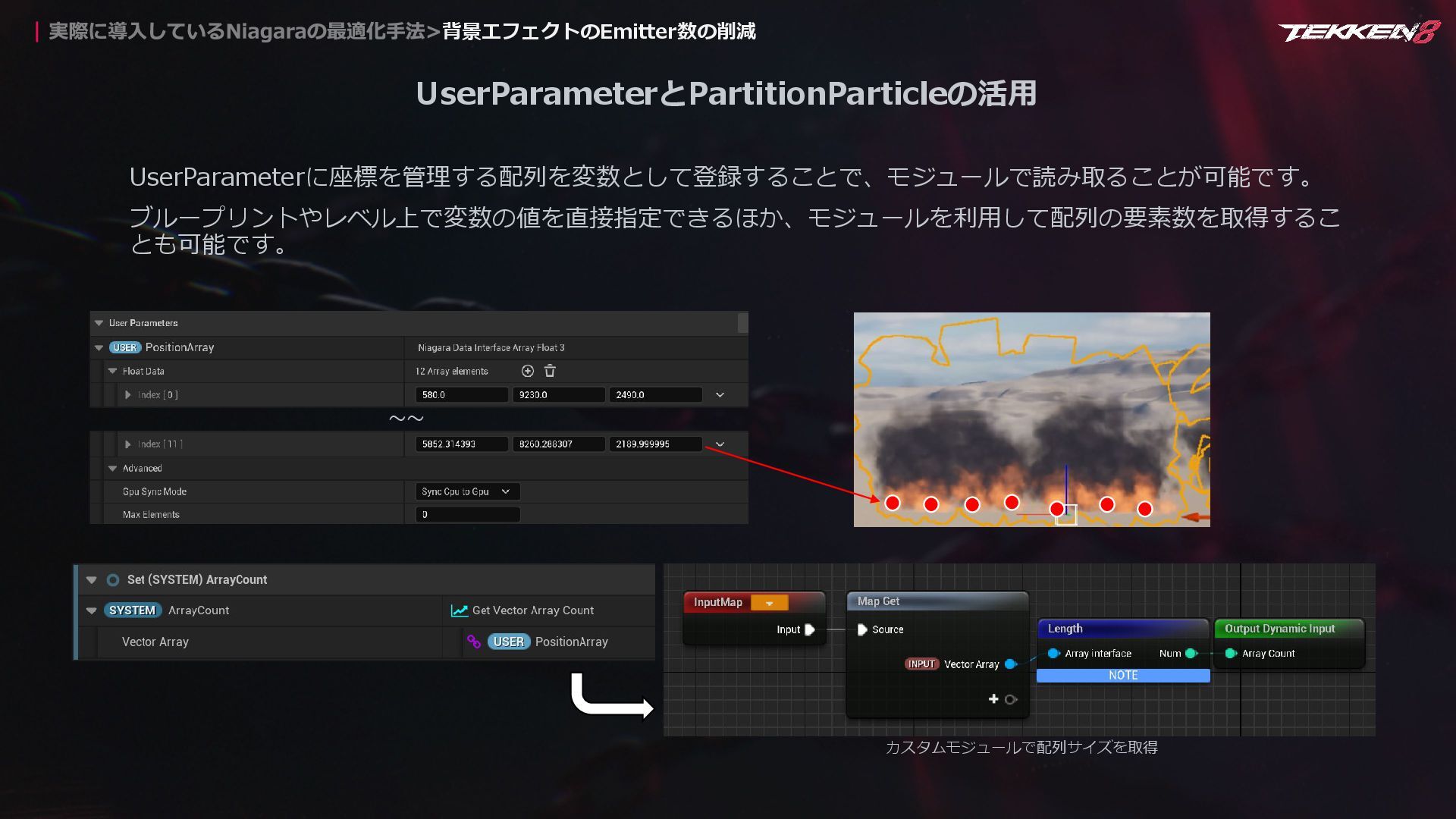 「鉄拳8」VFX開発におけるNiagaraモジュールの実装事例と 膨大なアセットを扱いながら60FPSを維持するためのNiagaraの最適化事例について紹介します。