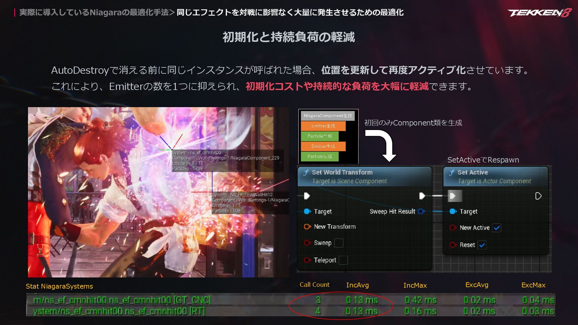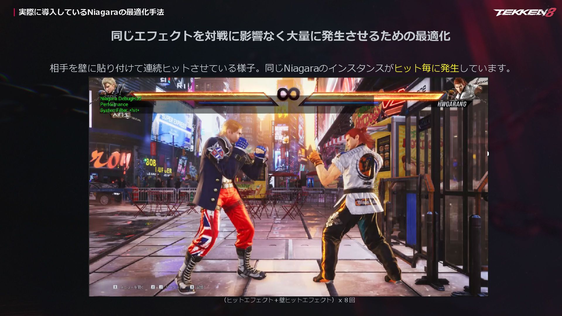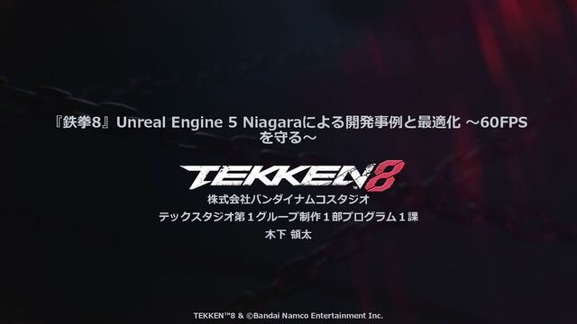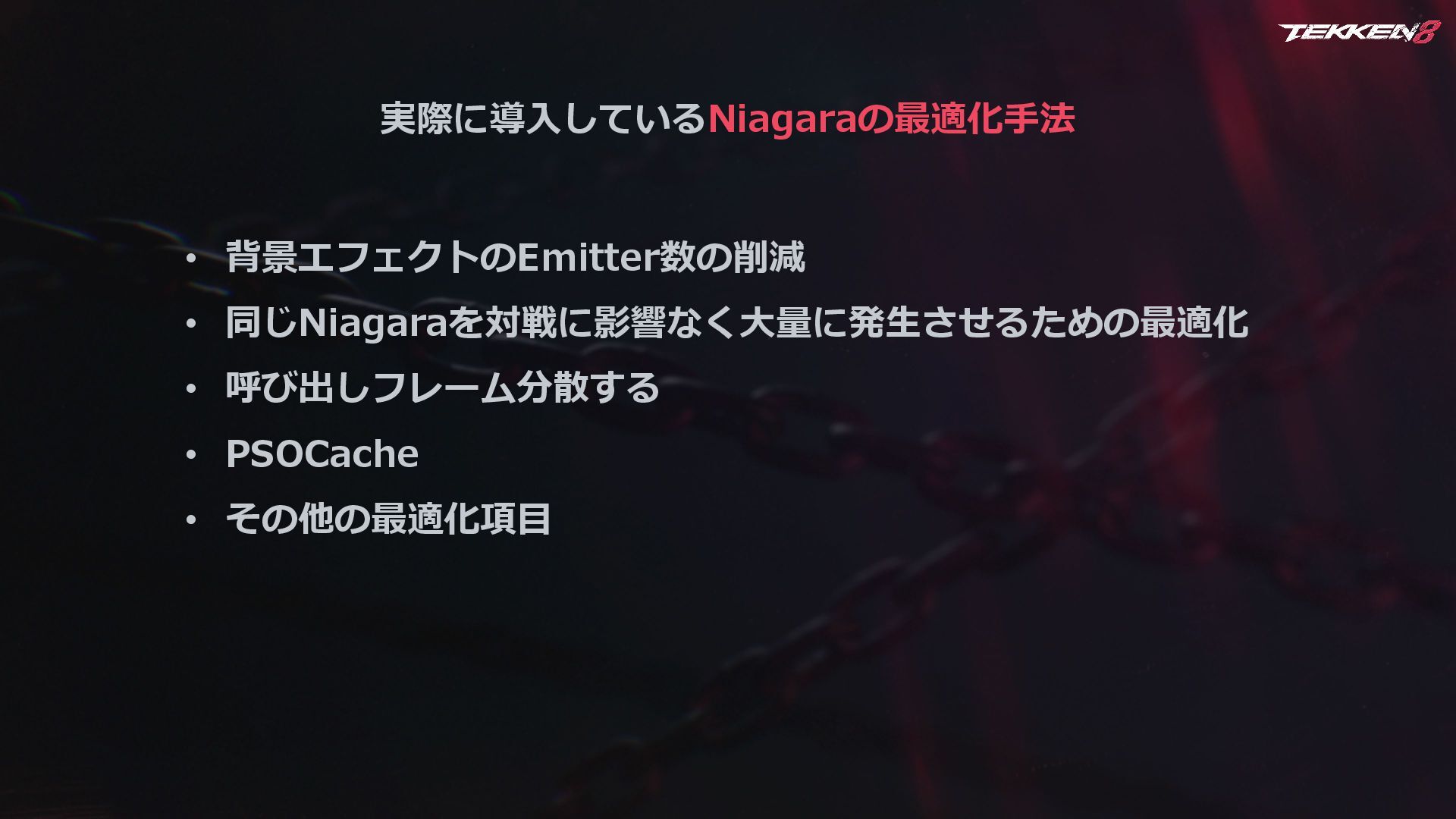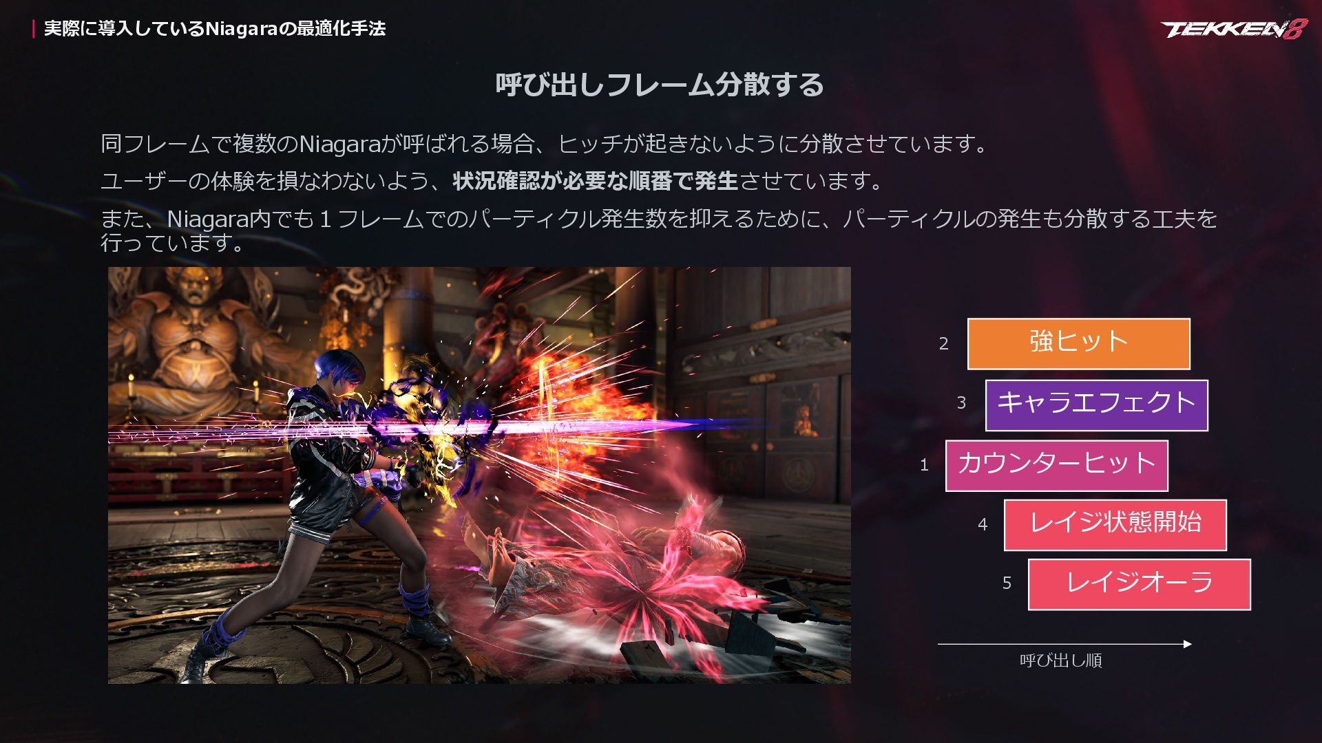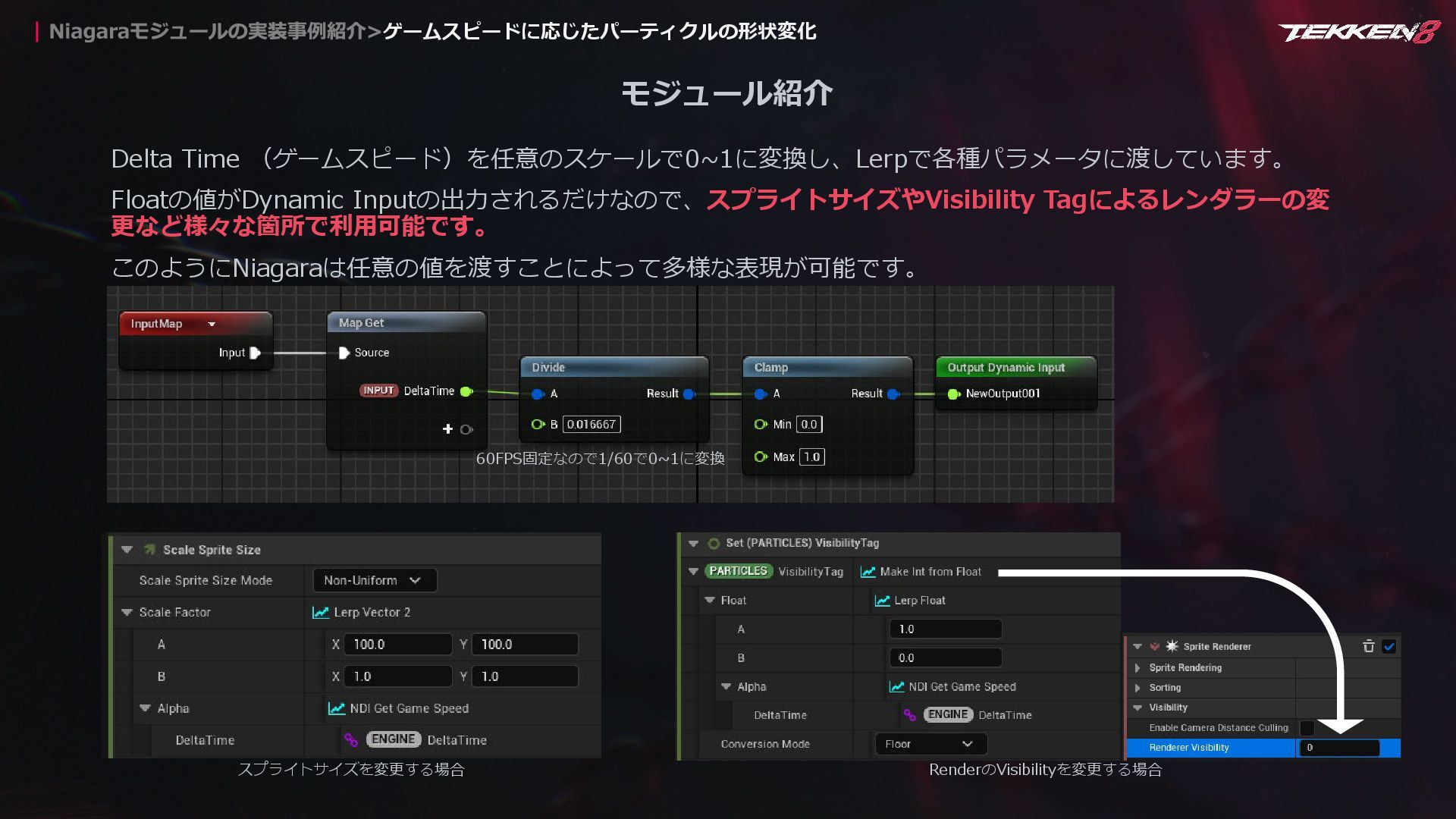 「鉄拳8」VFX開発におけるNiagaraモジュールの実装事例と 膨大なアセットを扱いながら60FPSを維持するためのNiagaraの最適化事例について紹介します。