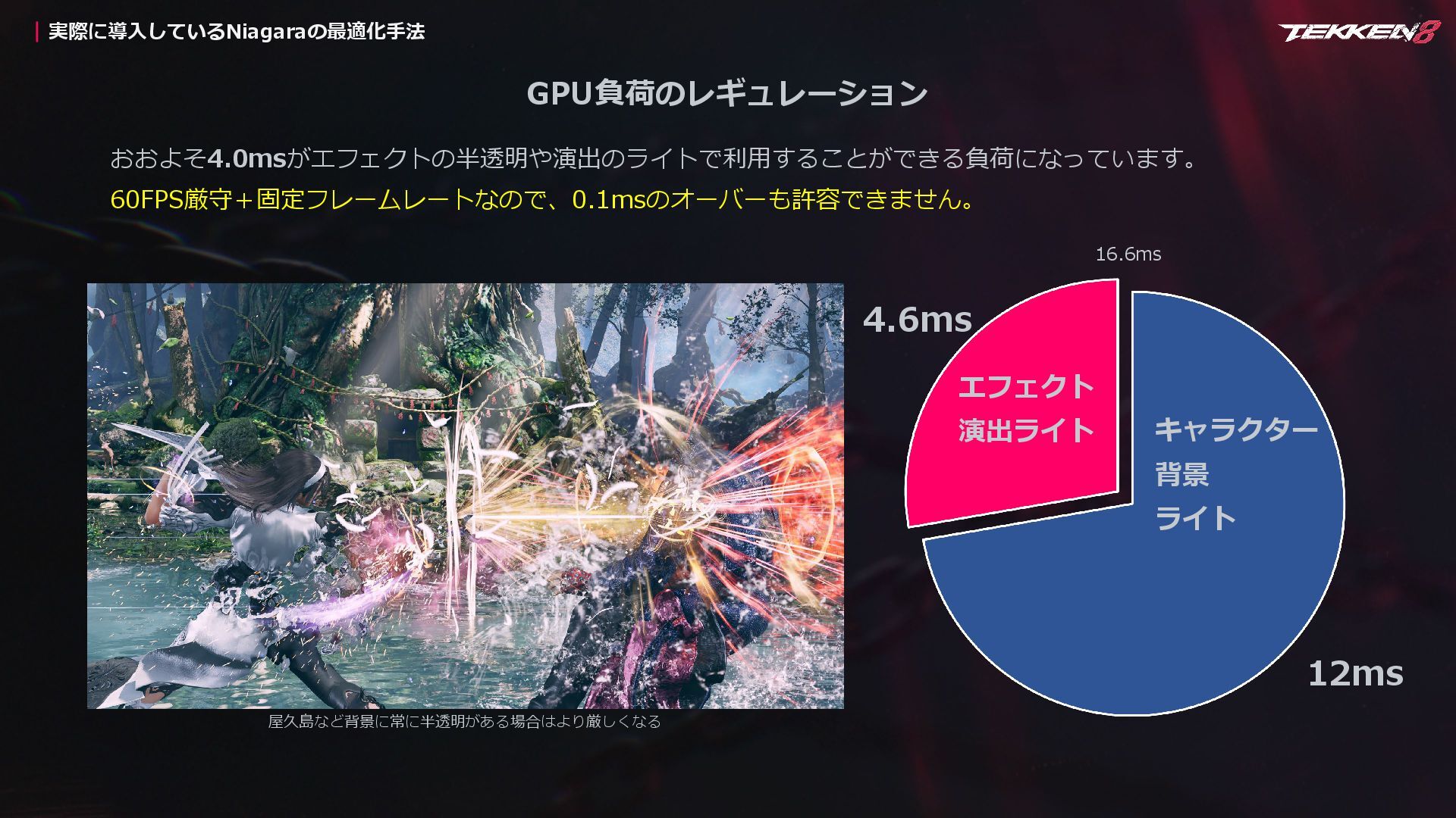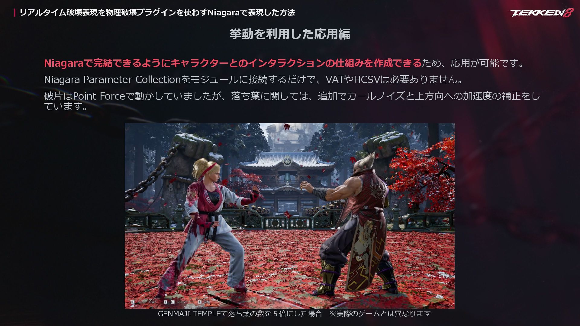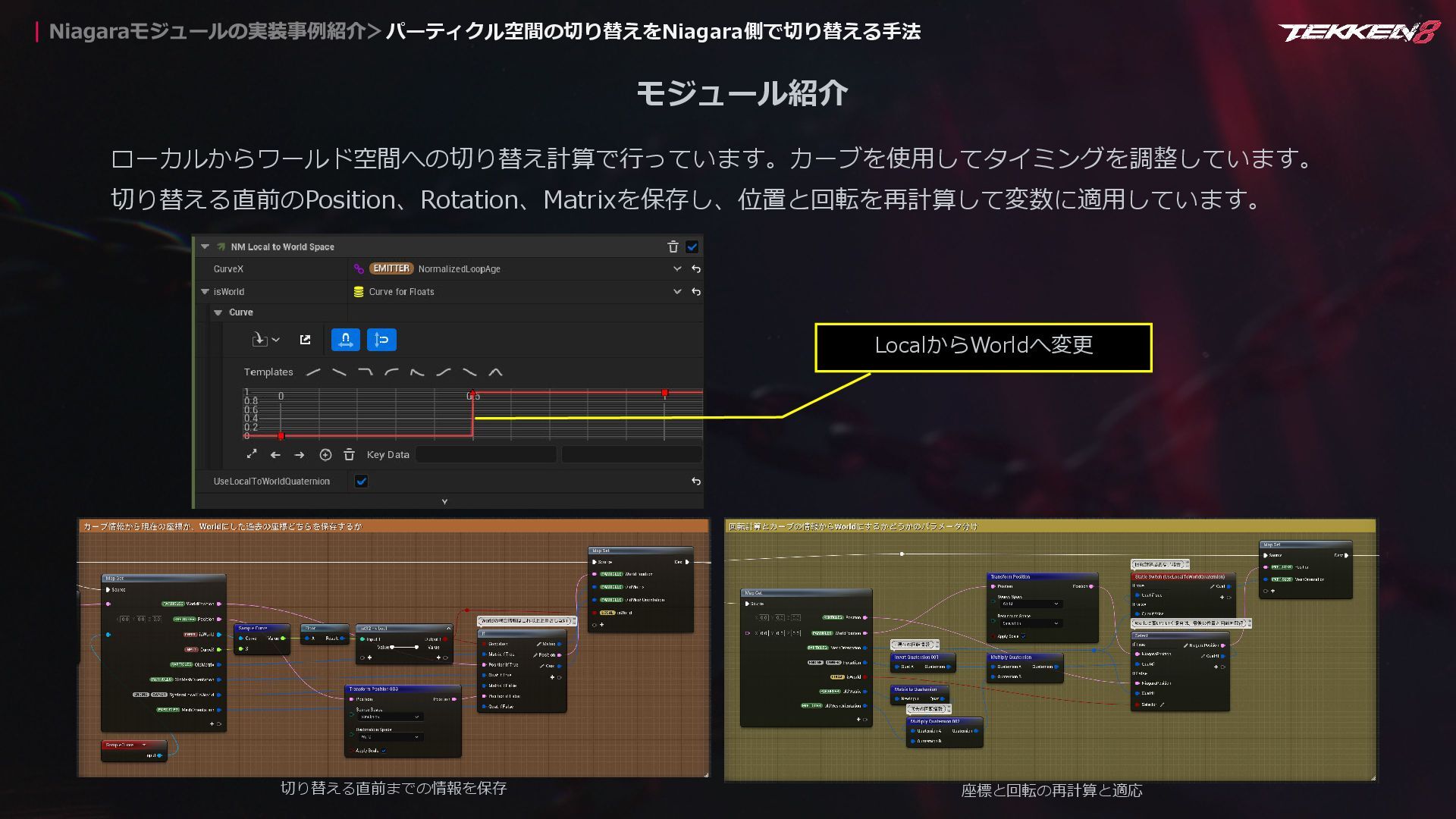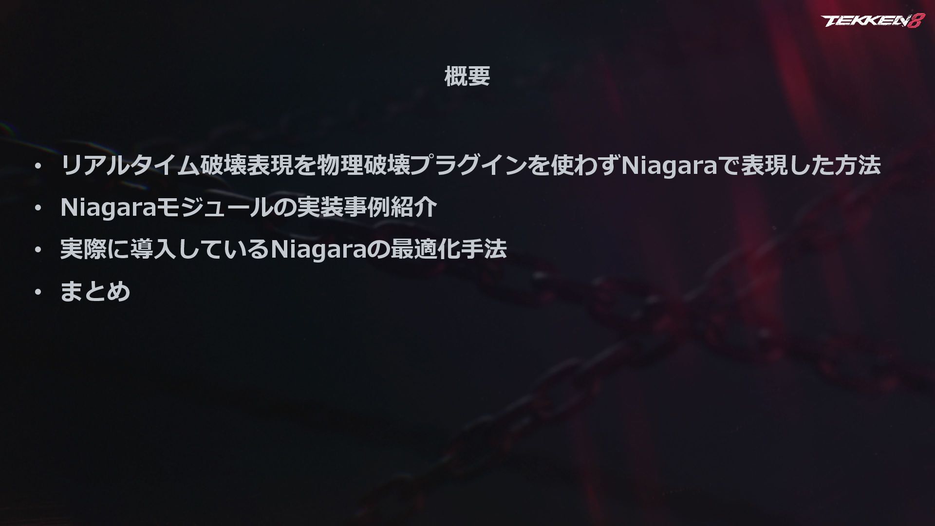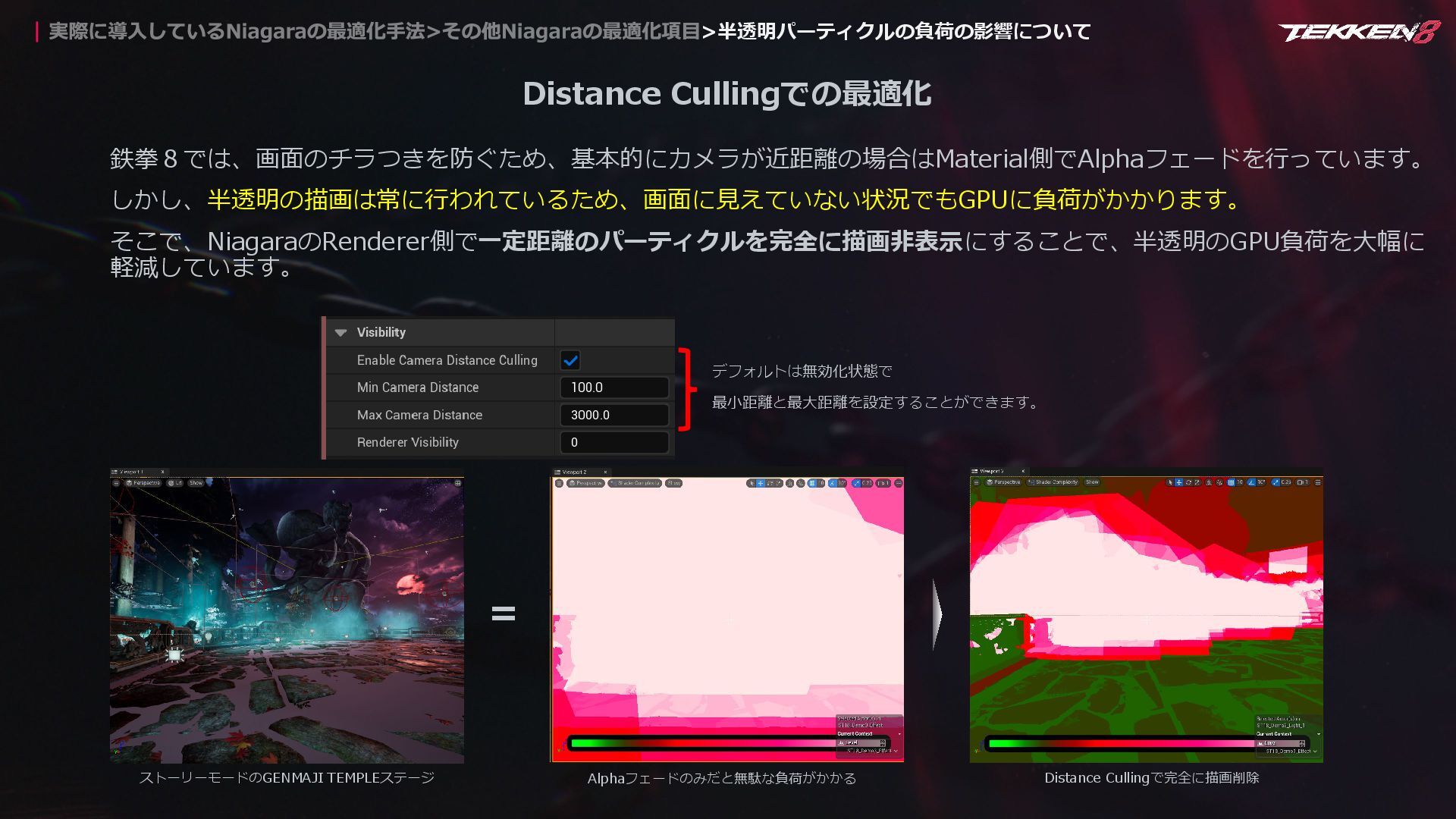 「鉄拳8」VFX開発におけるNiagaraモジュールの実装事例と 膨大なアセットを扱いながら60FPSを維持するためのNiagaraの最適化事例について紹介します。