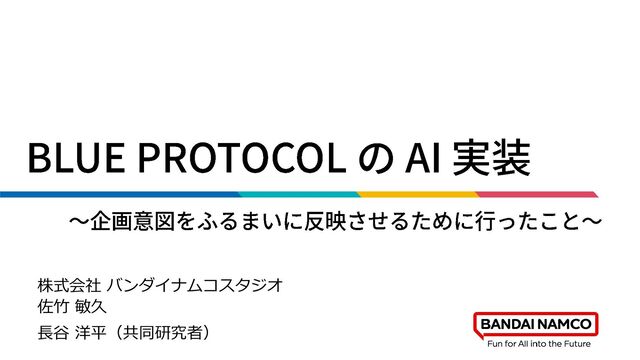 講演タイトル:BLUE PROTOCOL の AI 実装 ~企画意図をふるまいに反映させるために行ったこと~