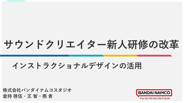 本セッションでは、バンダイナムコスタジオサウンドチームの新人研修についてご紹介します。