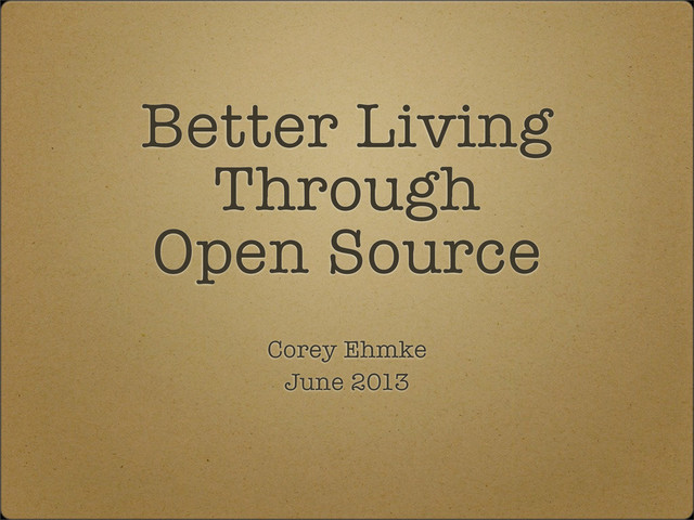 Better Living Through Open Source Corey Ehmke June 2013