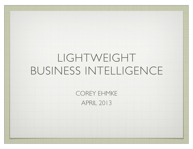 Long the provence of specialists in the hermetic world of enterprise software development, business intelligence (BI) is increasingly important to smaller, more agile companies and startups who need access to near-real-time information to make critical business decisions. With its support for aggregation and reduction of massive amounts of data and its flexible schemas, MongoDB is a great choice for creating lightweight, denormalized data stores optimized for BI, with the added bonus of peaceful co-existence with transactional data stores. In this talk I will explore how Trunk Club captures and analyzes customer information, monitors user behaviour, feeds machine-learning algorithms for decision support, and delivers value to business stakeholders through simple querying and reporting interfaces.