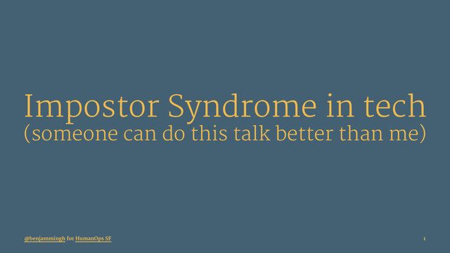 an inability to internalise their accomplishments & a persistent fear of being exposed as a "fraud" — clinical psychologists Dr. Pauline R. Clance & Suzanne A. Imes @benjammingh for HumanOps SF 5