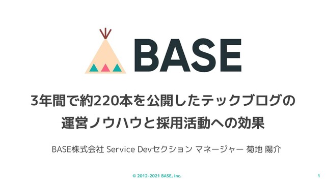 © 2012-2021 BASE, Inc. 1 3年間で約220本を公開したテックブログの 運営ノウハウと採用活動への効果 BASE株式会社 Service Devセクション