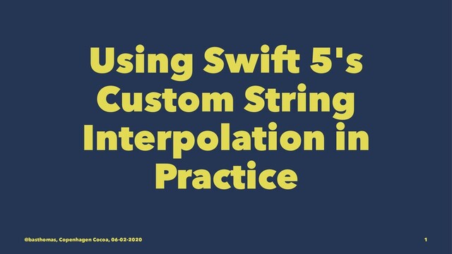 interpolationCount: Int) { output.reserveCapacity(literalCapacity * 2) } mutating func appendLiteral(_ literal: String) { output.append(literal) } mutating func appendInterpolation(twitter: String) { output.append("<a href=\"https://twitter.com/\(twitter)\">@\(twitter)</a>") } mutating func appendInterpolation(email: String) { output.append("<a href=\"mailto:\(email)\">\(email)</a>") } } let html: HTMLComponent = "Find me on \(twitter: "basthomas") or send an email to \(email: "