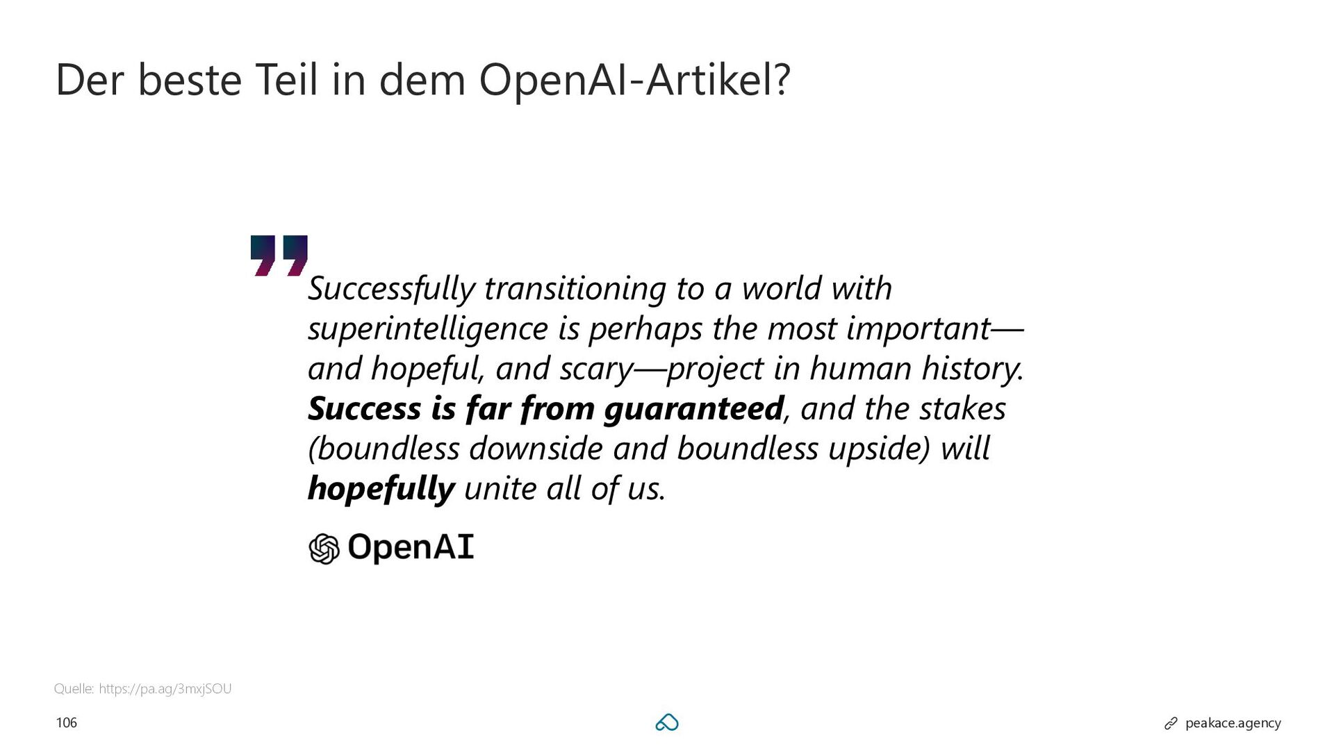 Schätzungen zufolge wird künstliche Intelligenz bis 2025 für 95 % aller Kund:inneninteraktionen verantwortlich sein – so überrascht es nicht, dass sich KI in den vergangenen 18 Monaten zu einem der meistdiskutierten Themen weltweit entwickelt hat. Spätestens seit der Einführung von ChatGPT scheint es, als führe kein Weg mehr an künstlicher Intelligenz vorbei. Unternehmen sind fieberhaft auf der Suche nach sinnvollen Anwendungsfällen, doch wo anfangen bei derart vielen Möglichkeiten? Welchen Einfluss hat KI auf das Thema Suche – und damit auf eure Suchmarketing-Aktivitäten? In seiner Keynote wirft Bastian einen Blick auf die (nahe!) Zukunft und liefert praktische Beispiele, wie ihr das Wachstum eures Unternehmens langfristig vorantreibt.