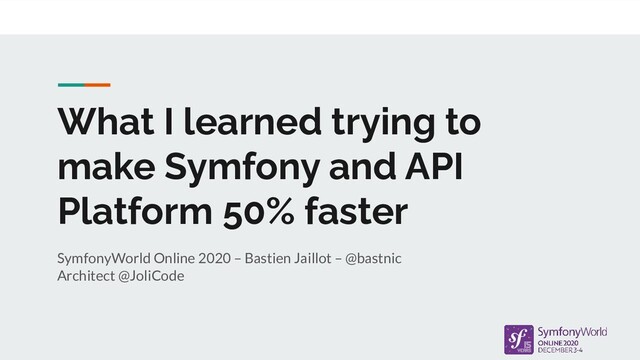Working on a big symfony project with a quite common stack (API with APIP, lots of doctrine entities and all config in YAML files), we experienced performances issues in both dev and prod mode.