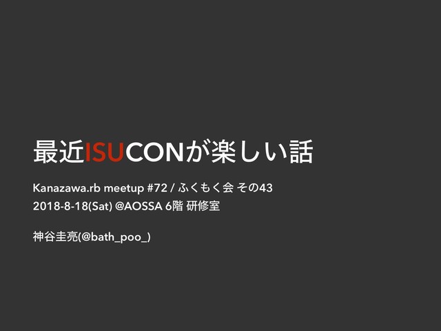 ࠷ۙISUCONָ͕͍͠ Kanazawa.rb meetup #72 / ;͘͘ձ ͦͷ43 2018-8-18(Sat) @AOSSA 6֊