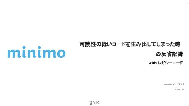 @MIXI Androidエンジニア新年会 2025.01.16 可読性の低いコードを生み出してしまった時 の反省記録 with レガシーコード 1