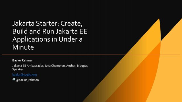 Under a Minute Bazlur Rahman Jakarta EE Ambassador, Java Champion, Author, Blogger, Speaker [email protected] 🐦@bazlur_rahman
