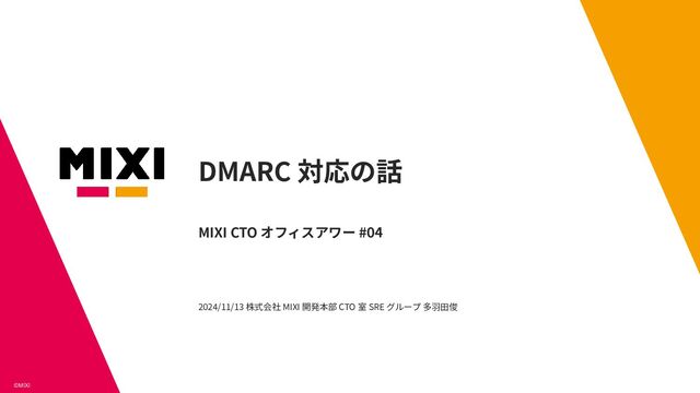 11月13日に株式会社 MIXI の開発者向け YouTube チャンネル MIXI TECH TALK の CTO Office Hour で話した時の資料です。 YouTube: https://www.youtube.com/watch?v=AEct8fWQ6TQ SRE グループの採用はこちら: https://mixigroup-recruit.mixi.co.jp/occupation/engineer/1620/