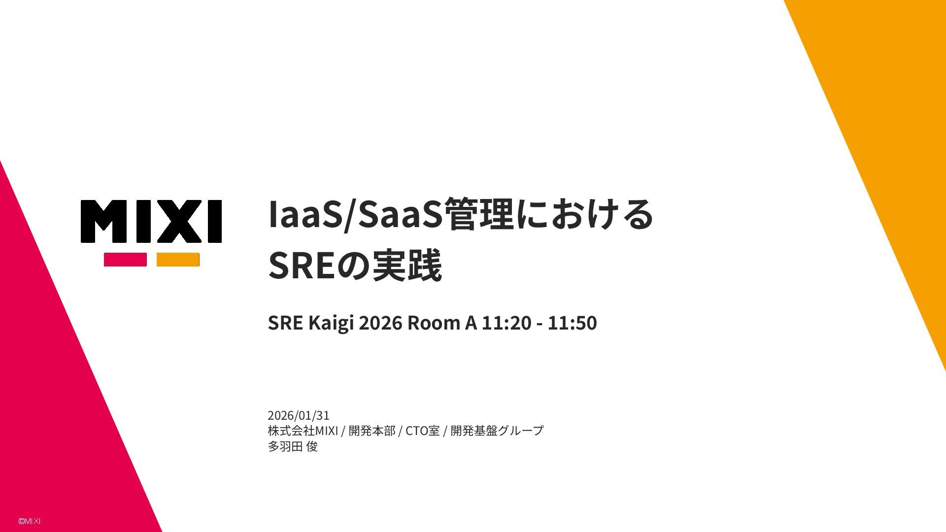 俊 SRE Kaigi 2026 Room A 11:20 - 11:50 IaaS/SaaS管理における SREの実践