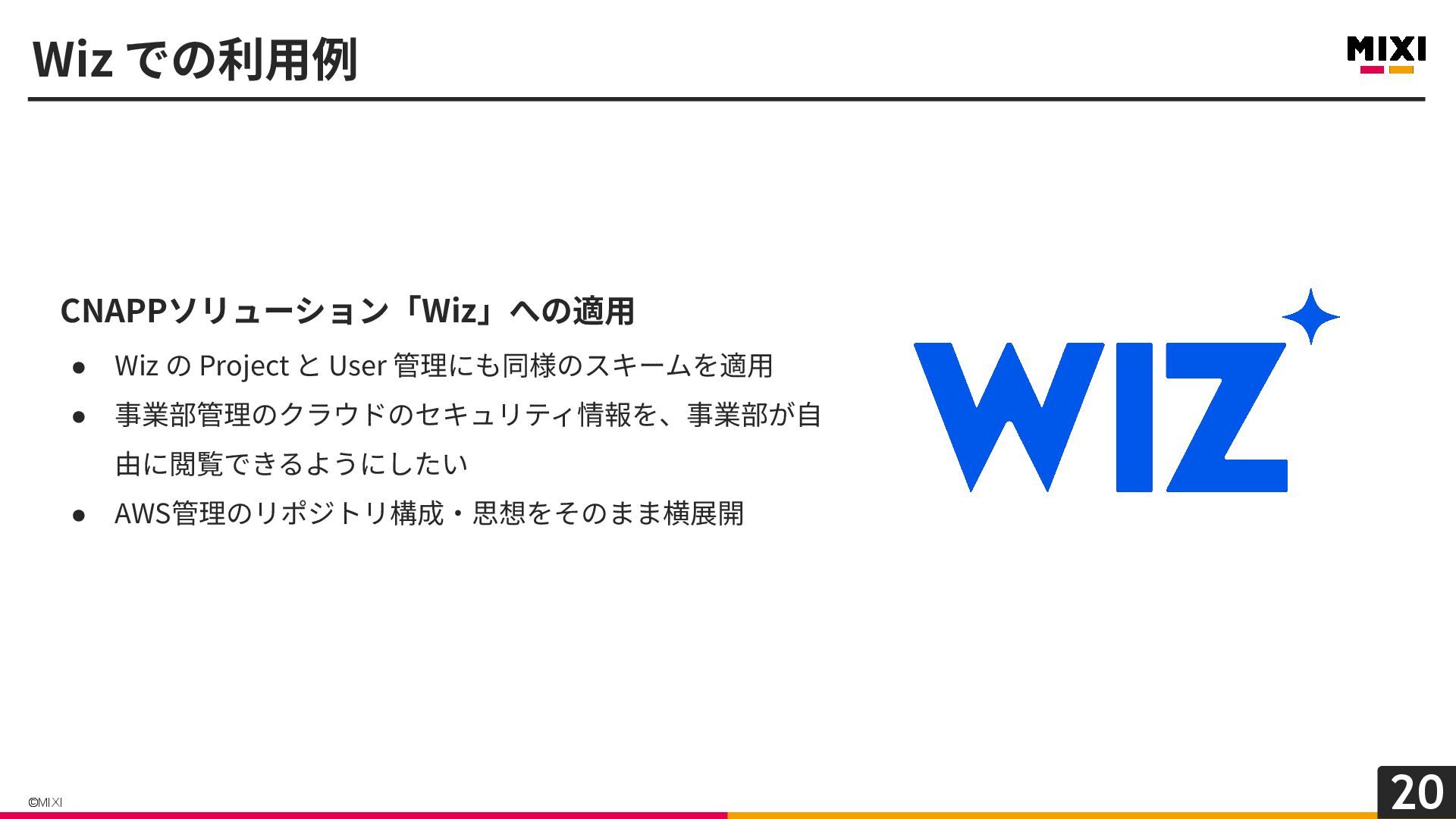 17. ©MIXI 20 CNAPPソリューション「Wiz」への適⽤ • Wiz の Project と User 管理にも同様のスキームを適⽤
