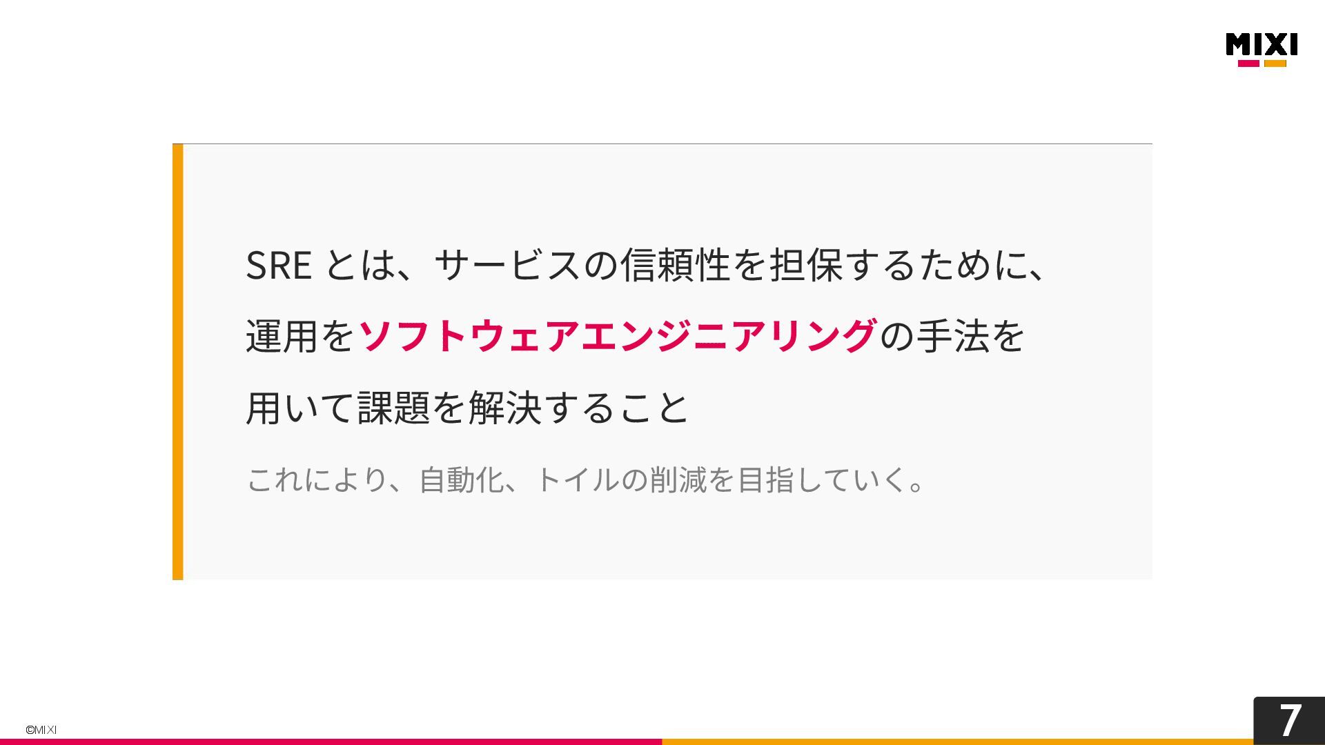 当セッションでは、MIXI GROUP全体のIaaS/SaaS管理におけるSRE実践のリアルを紹介します。