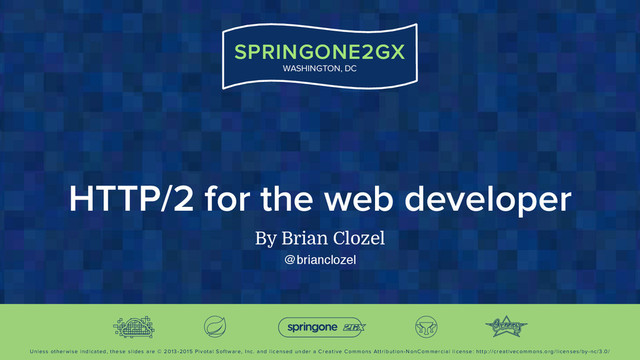 Inc. and licensed under a Creative Commons Attribution-NonCommercial license: http://creativecommons.org/licenses/by-nc/3.0/ SPRINGONE2GX WASHINGTON, DC HTTP/2 for the web developer By Brian Clozel @brianclozel
