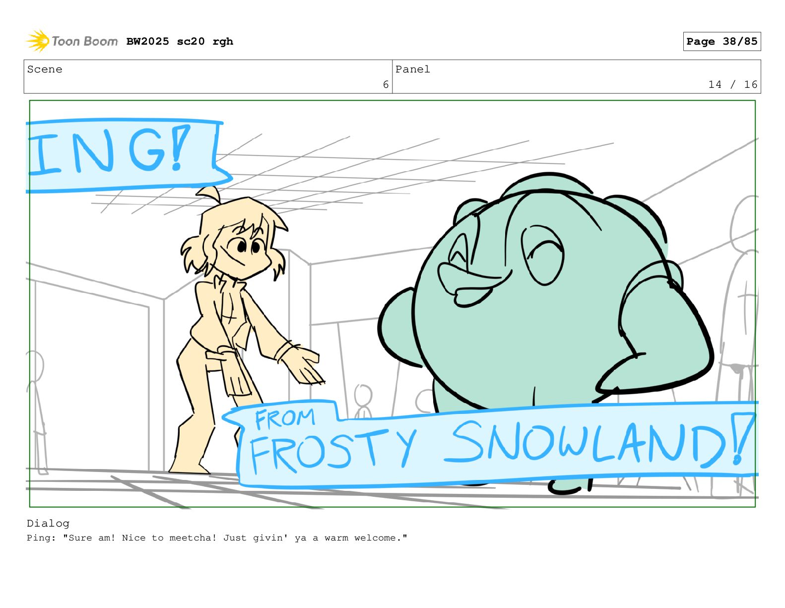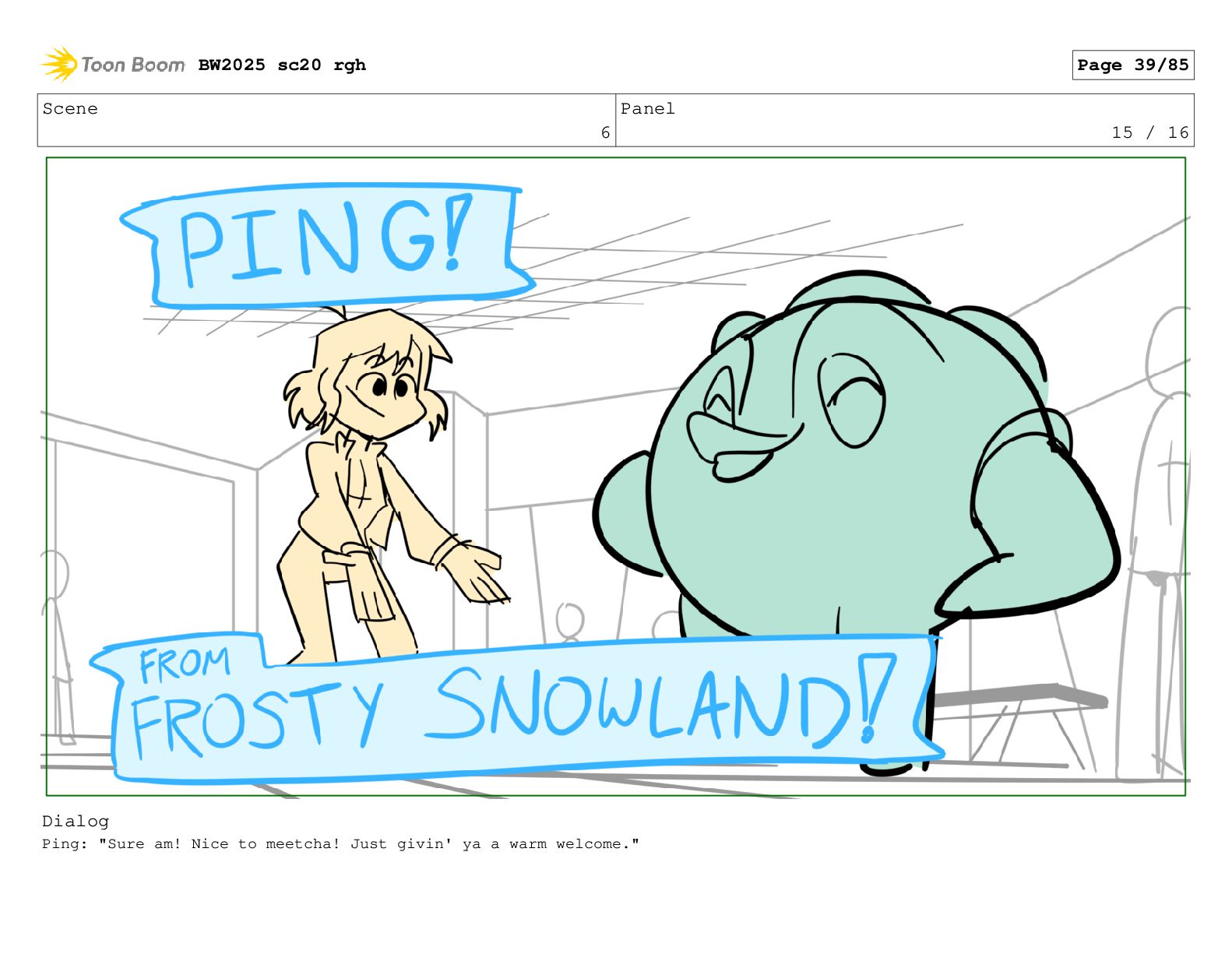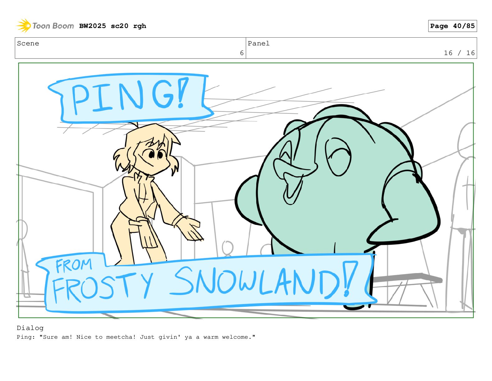 Scene 6 Panel 14 / 16 Dialog Ping: "Sure am!