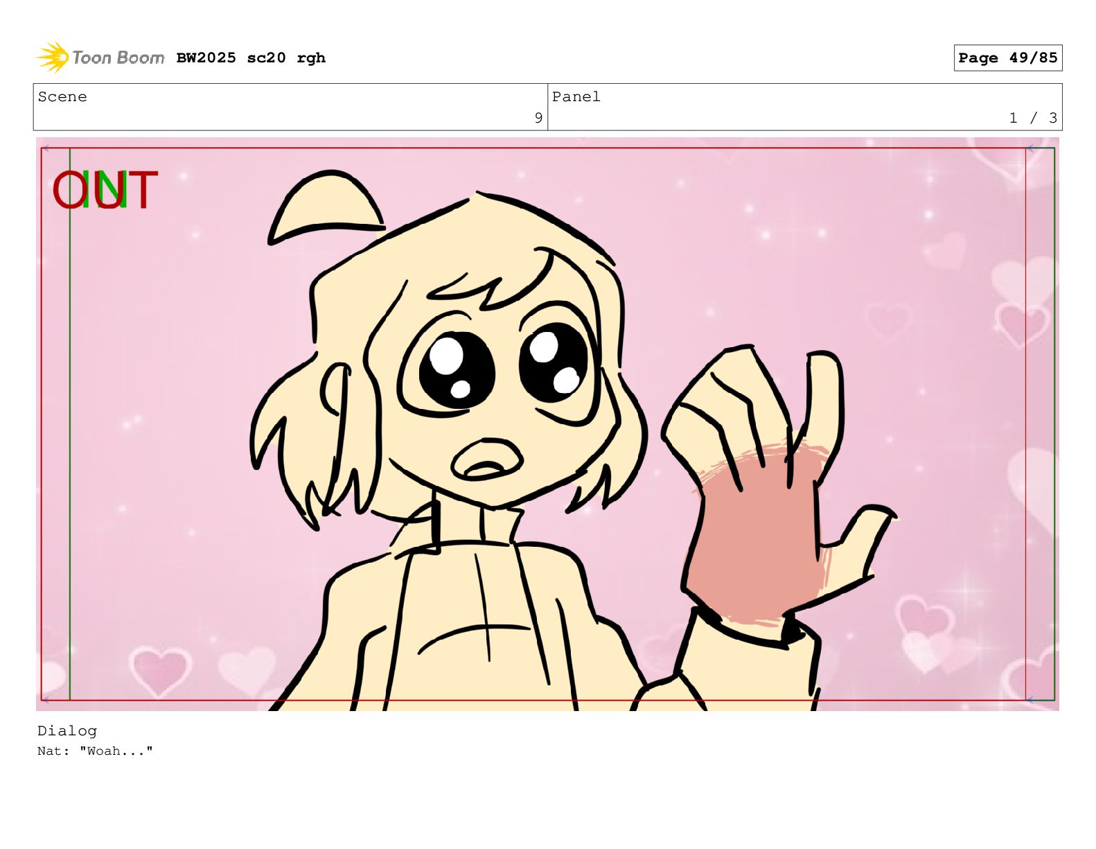 Scene 9 Panel 1 / 3 Dialog Nat: "Woah..." BW2025
