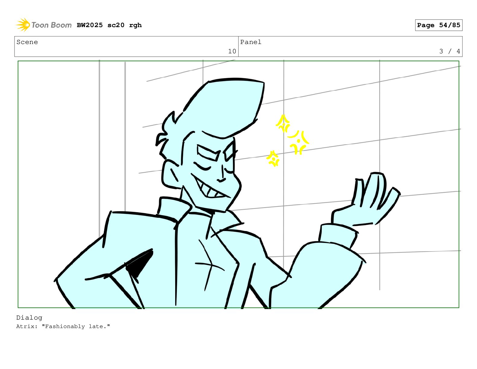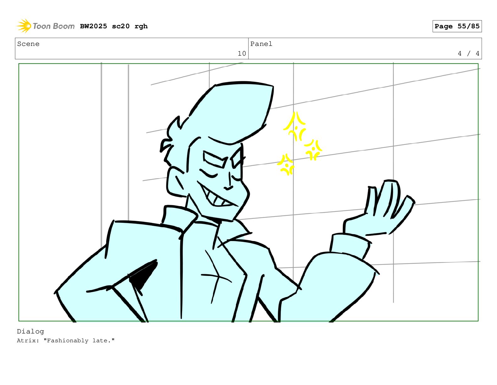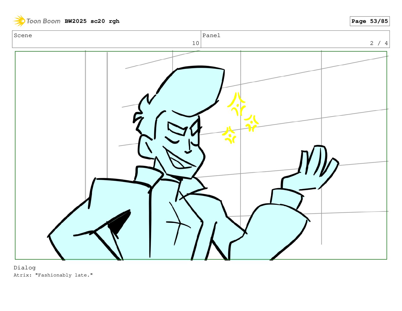 Scene 10 Panel 2 / 4 Dialog Atrix: "Fashionably late."