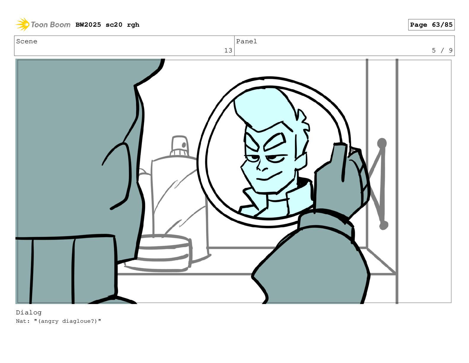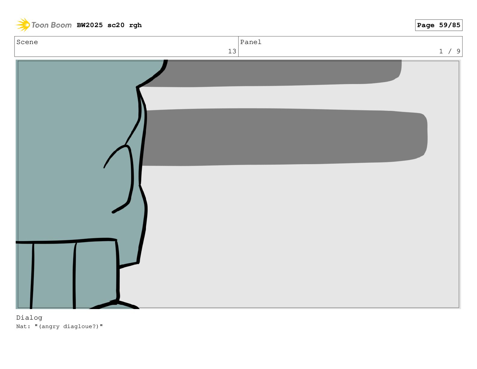 Scene 13 Panel 3 / 9 Dialog Nat: "(angry diagloue?)"