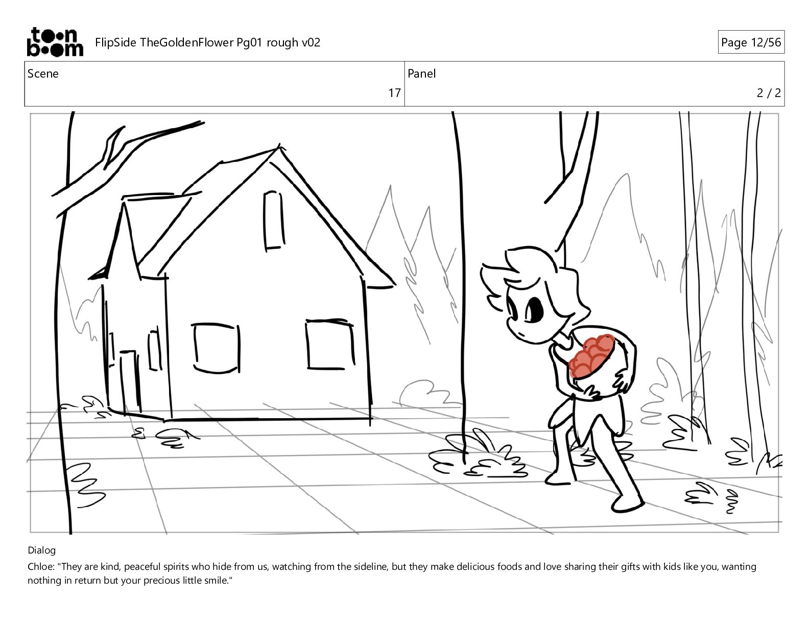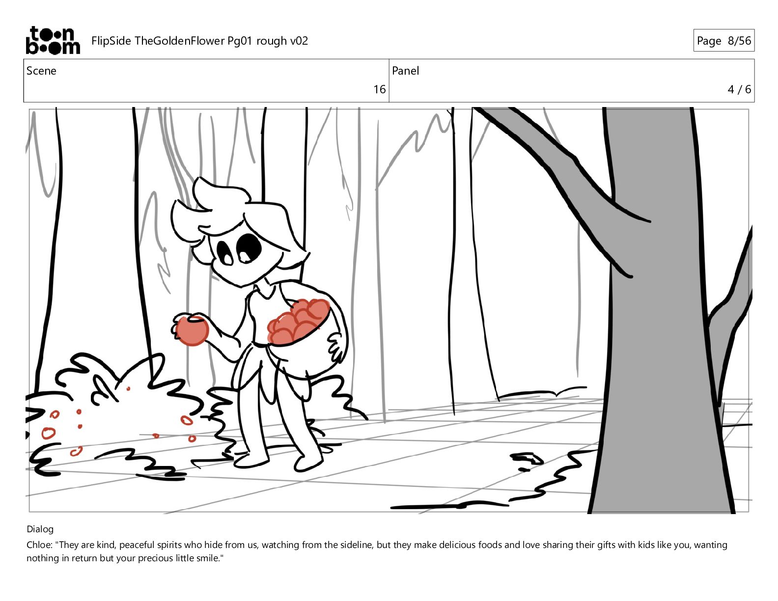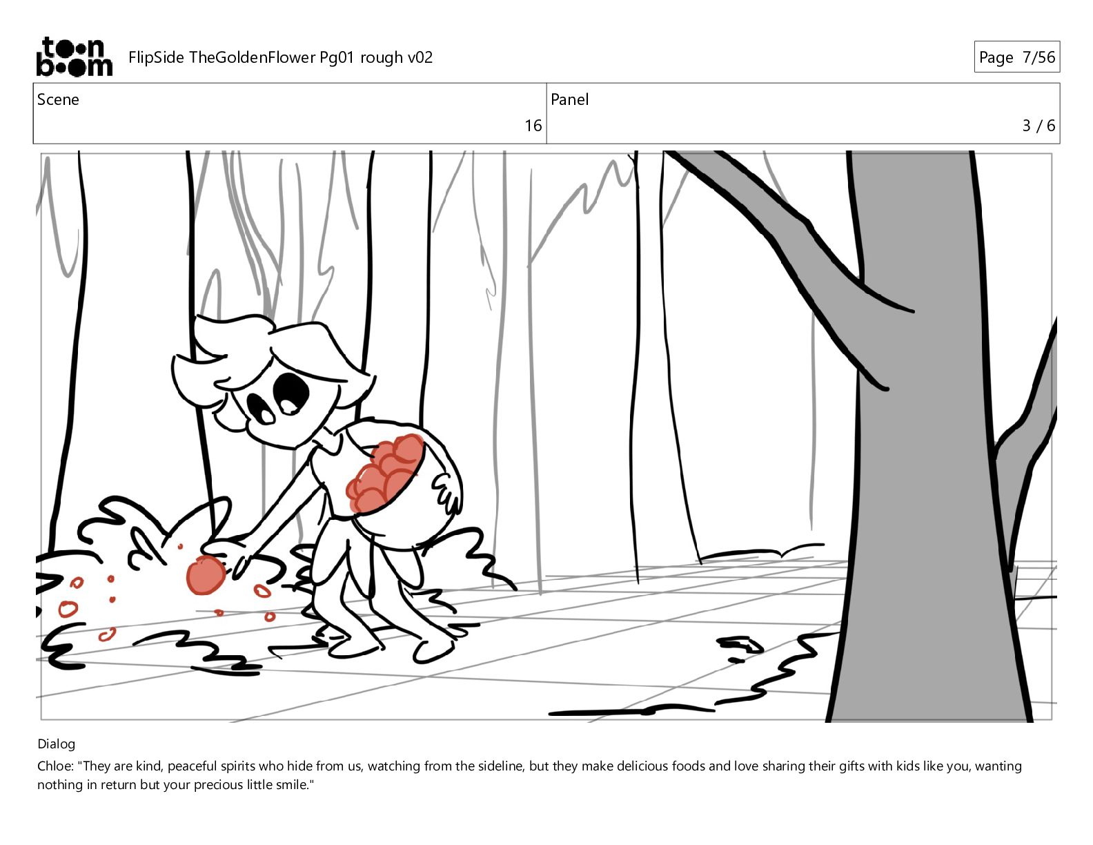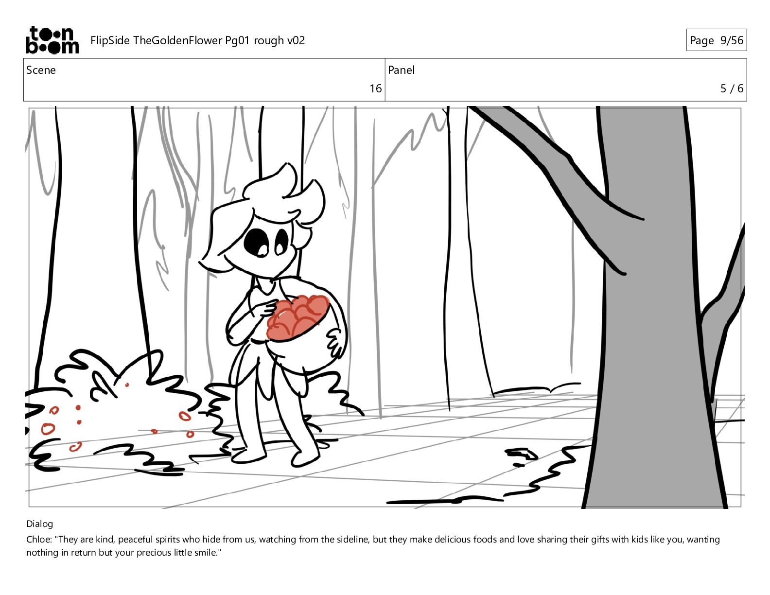 kind, peaceful spirits who hide from us, watching from the sideline, but they make delicious foods and love sharing their gifts with kids like you, wanting nothing in return but your precious little smile." FlipSide TheGoldenFlower Pg01 rough v02 Page 10/56