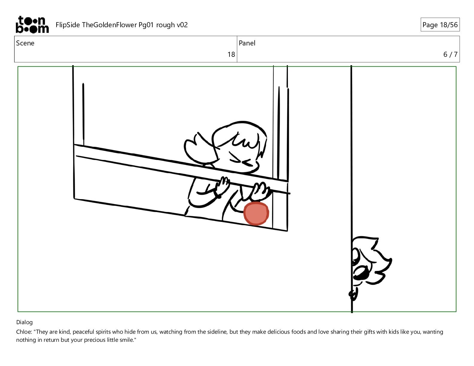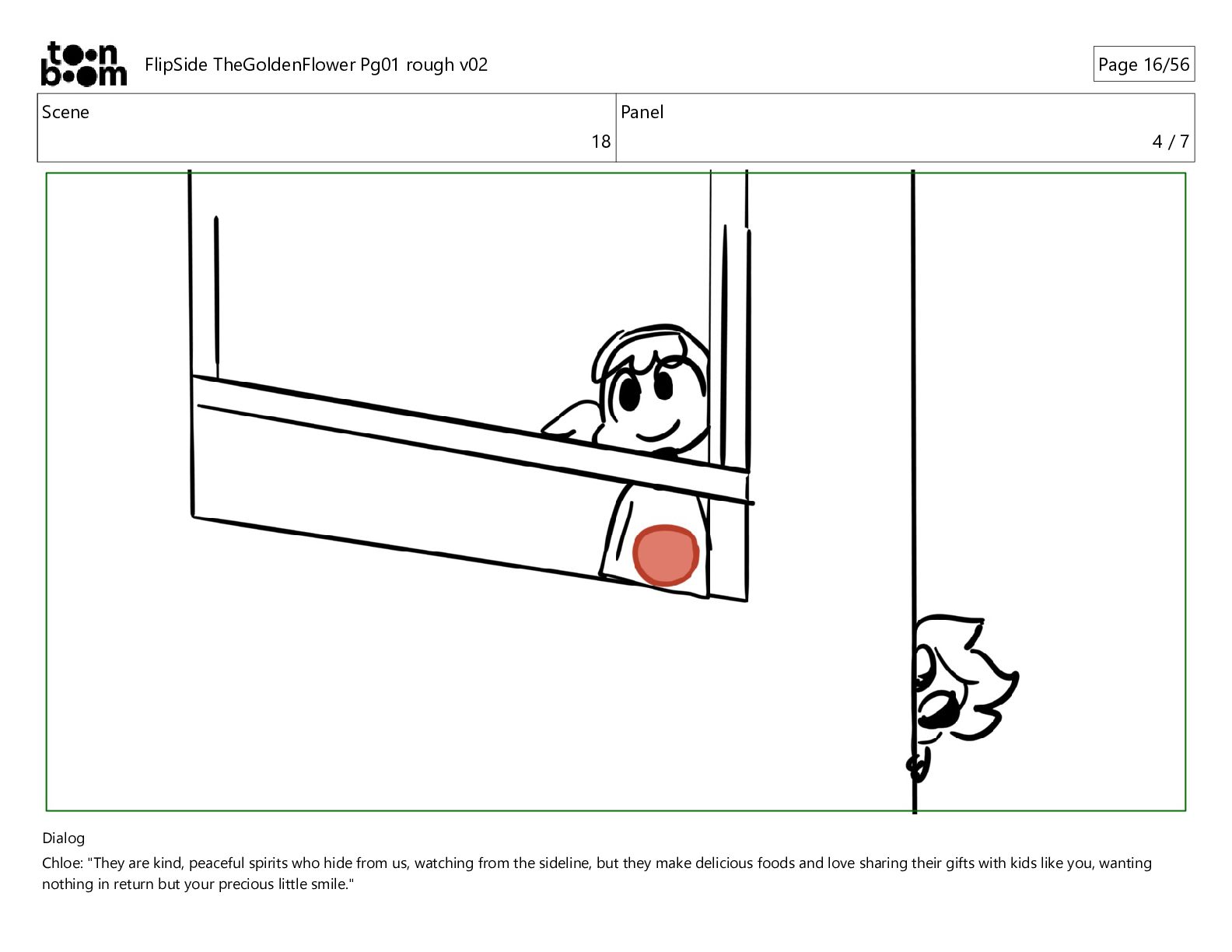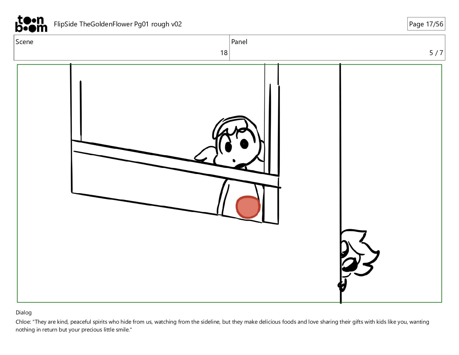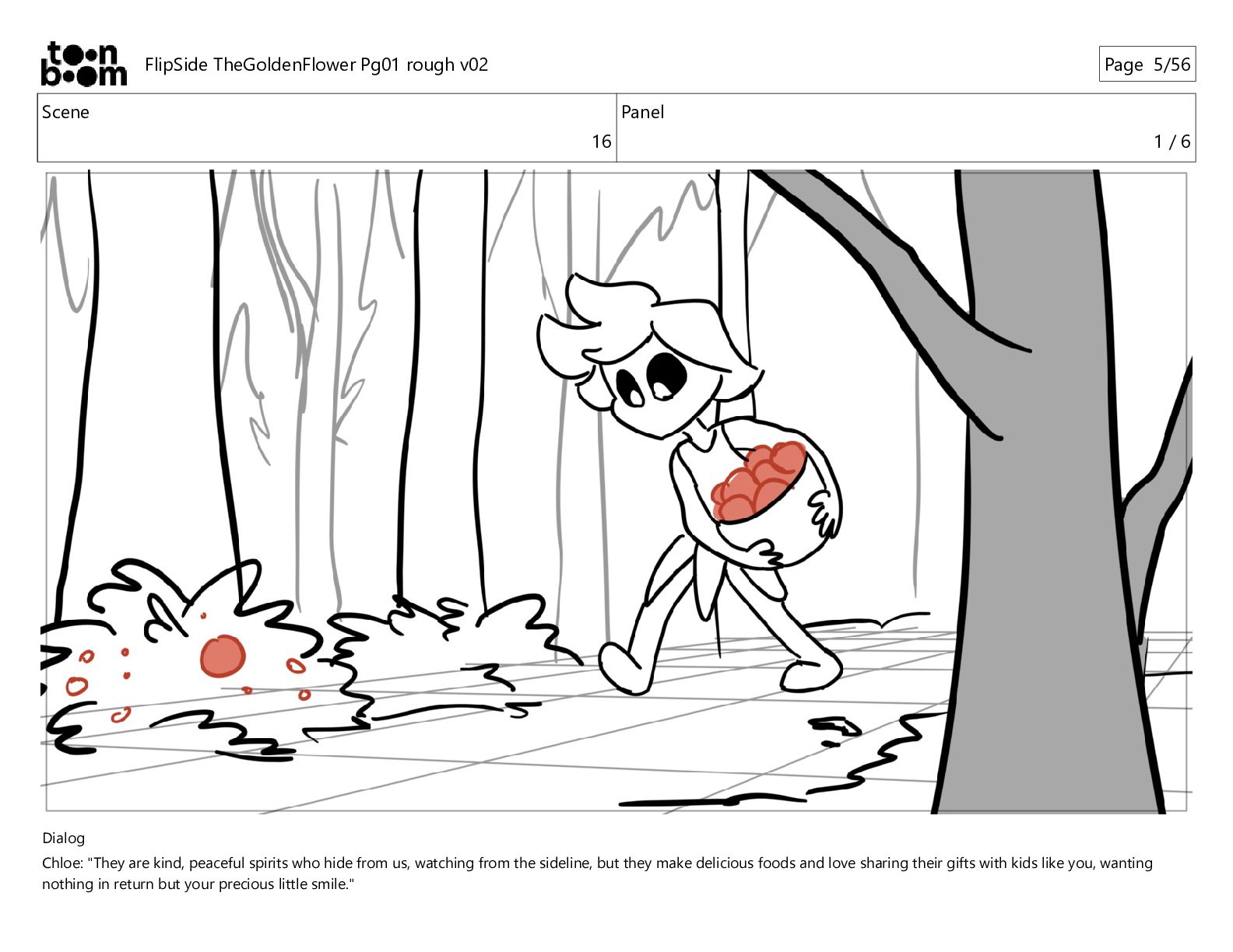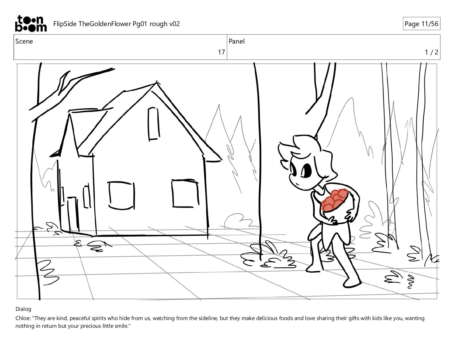 kind, peaceful spirits who hide from us, watching from the sideline, but they make delicious foods and love sharing their gifts with kids like you, wanting nothing in return but your precious little smile." FlipSide TheGoldenFlower Pg01 rough v02 Page 10/56