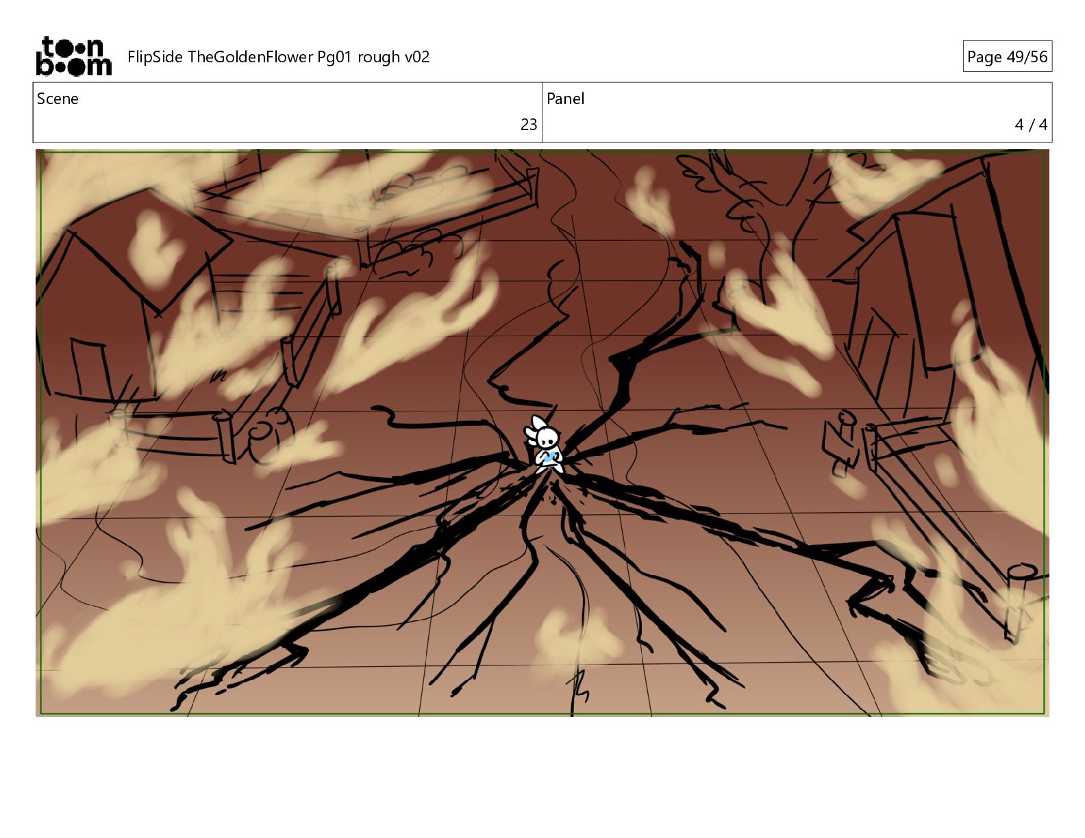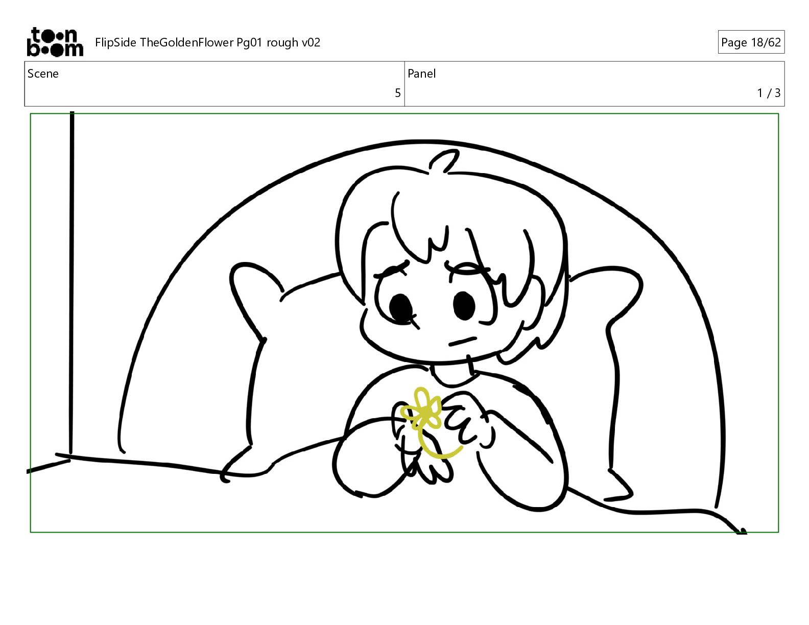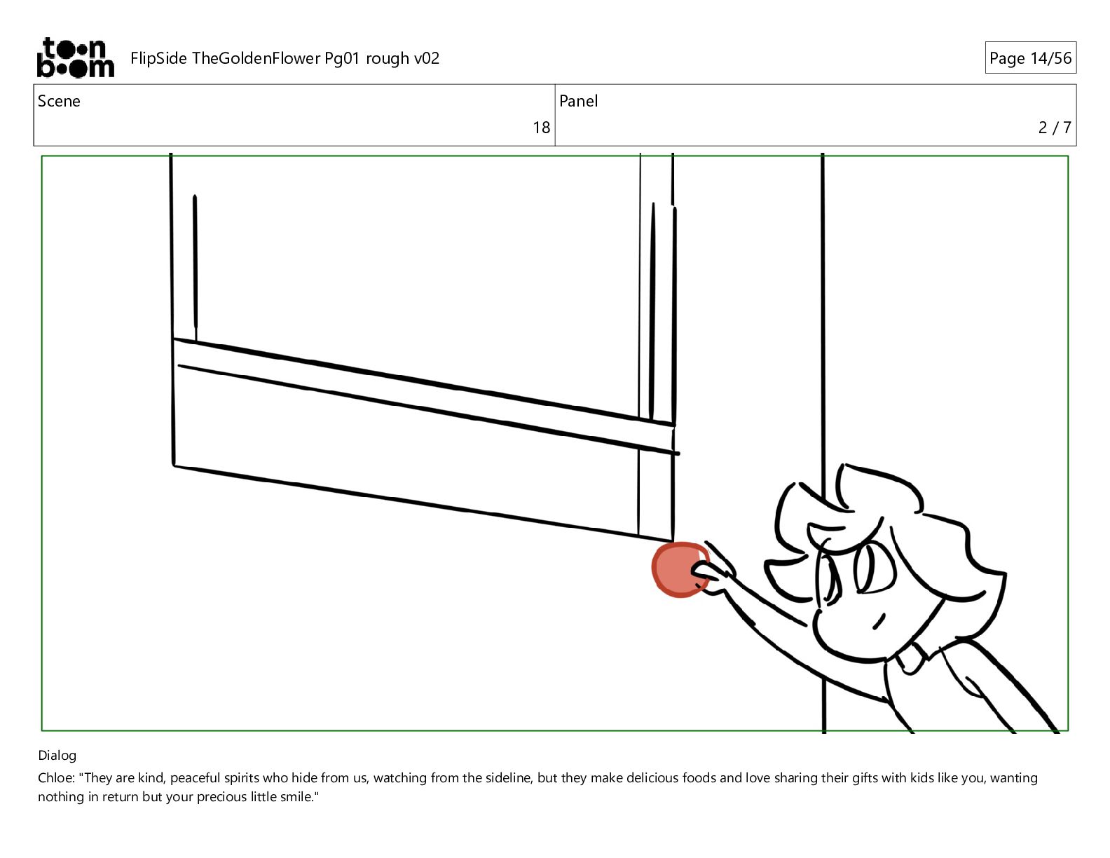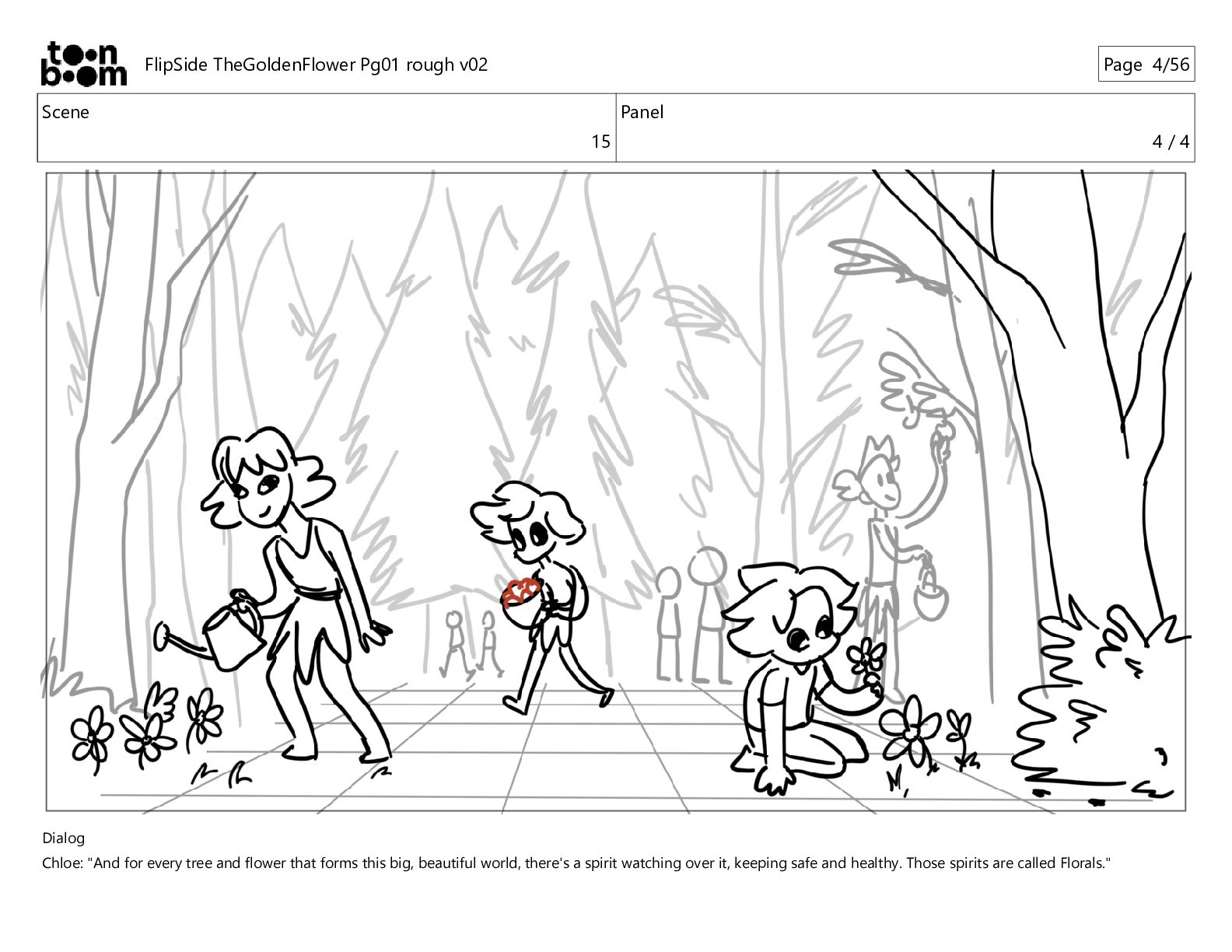 kind, peaceful spirits who hide from us, watching from the sideline, but they make delicious foods and love sharing their gifts with kids like you, wanting nothing in return but your precious little smile." FlipSide TheGoldenFlower Pg01 rough v02 Page 10/56