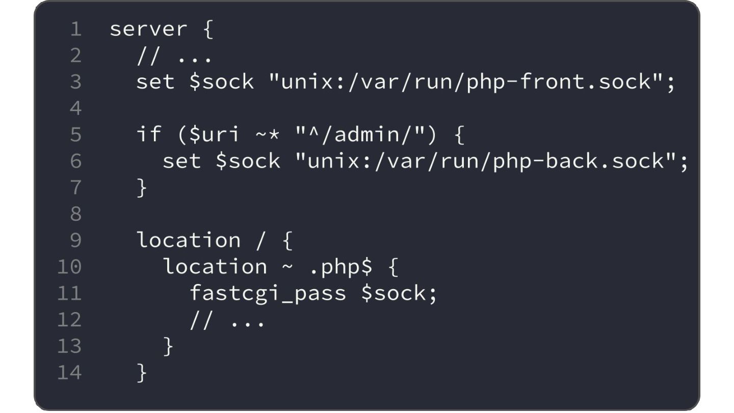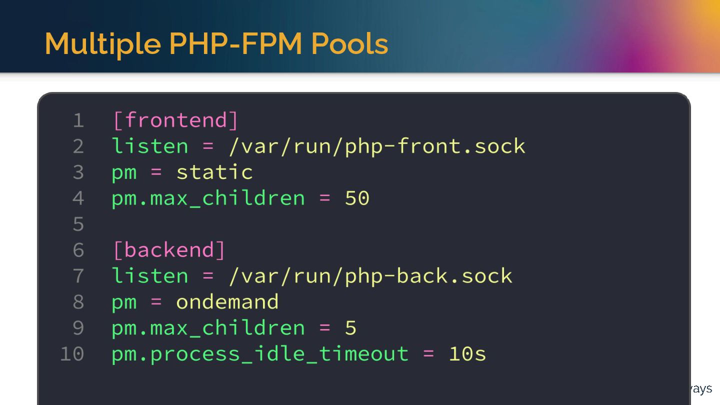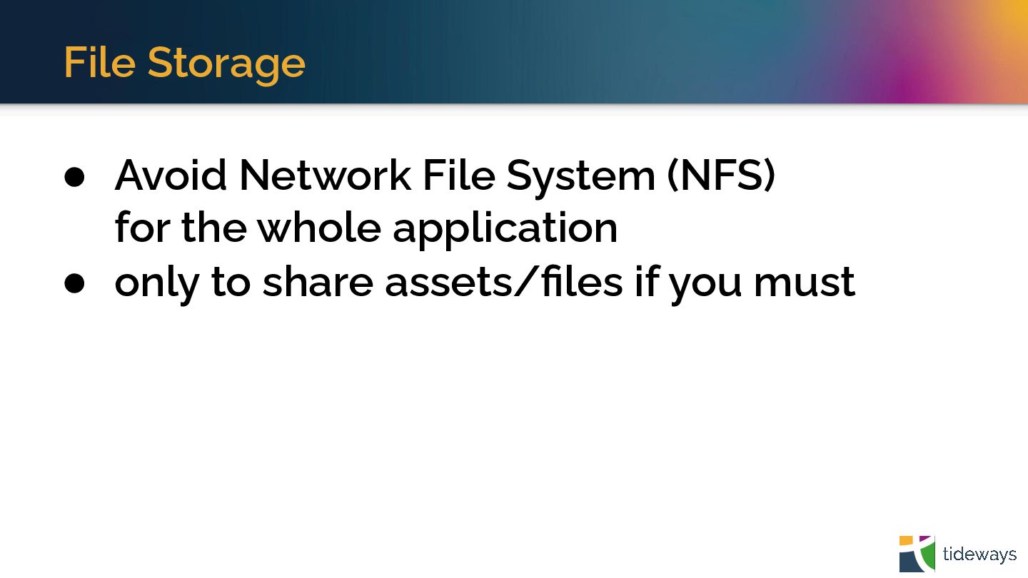 servers • Web servers only run php-fpm • Independent worker and cron servers • Databases and caches have their servers • each system redundant or clustered if you want to avoid single point of failure