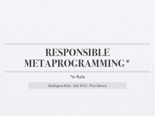 was a great #{beer}!" } def buy_beer(beer) puts "Just bought some #{beer}!" end end pete = BeerDrinker.new pete.drink_beer("Heady Topper") pete.buy_beer("Natty Light") 101: Dynamic Methods define_method equivalent