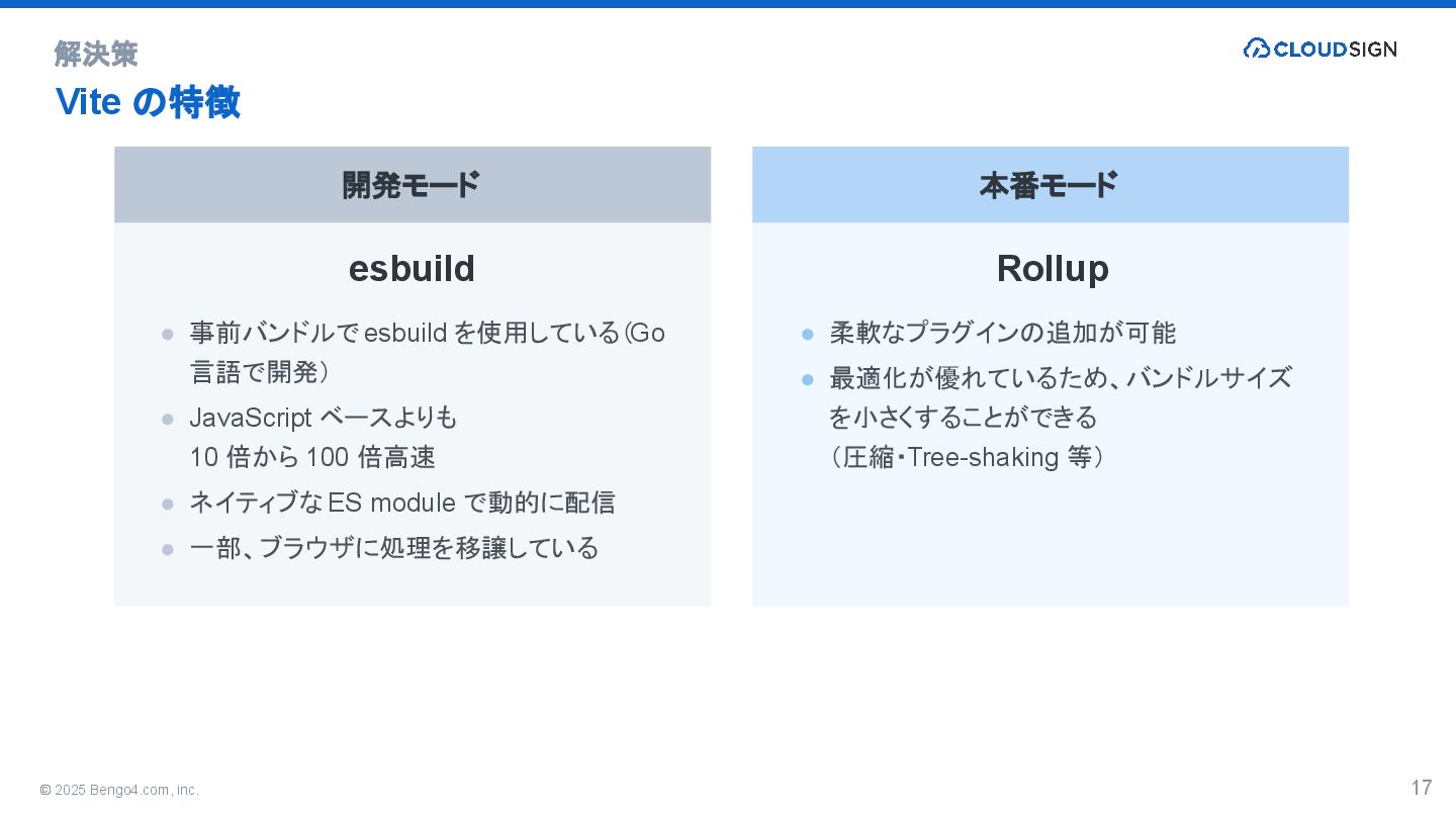 8. © 2025 Bengo4.com, inc. 17 解決策 Vite の特徴 • 事前バンドルで