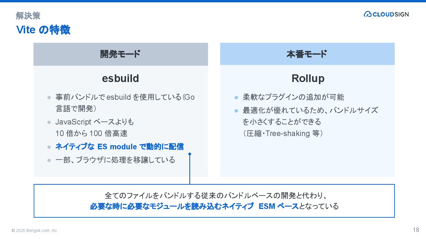 9. © 2025 Bengo4.com, inc. 18 解決策 Vite の特徴 • 事前バンドルで