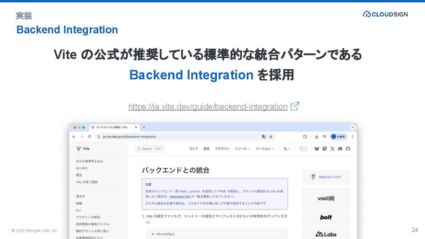 23. © 2025 Bengo4.com, inc. • Vite 公式 Backend Integration 採用
