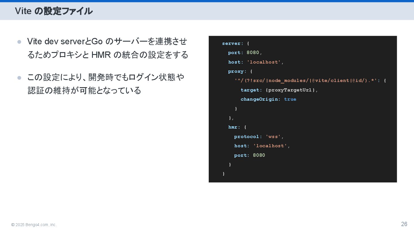 14. © 2025 Bengo4.com, inc. 26 • Vite dev serverとGo のサーバーを連携させ