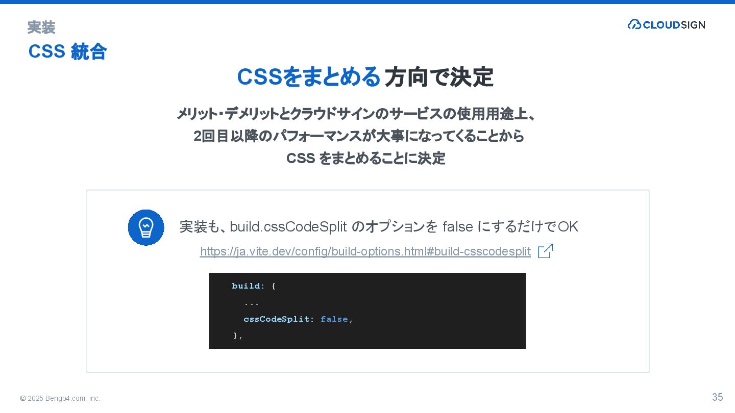 21. © 2025 Bengo4.com, inc. 35 実装 CSS 統合 build: {