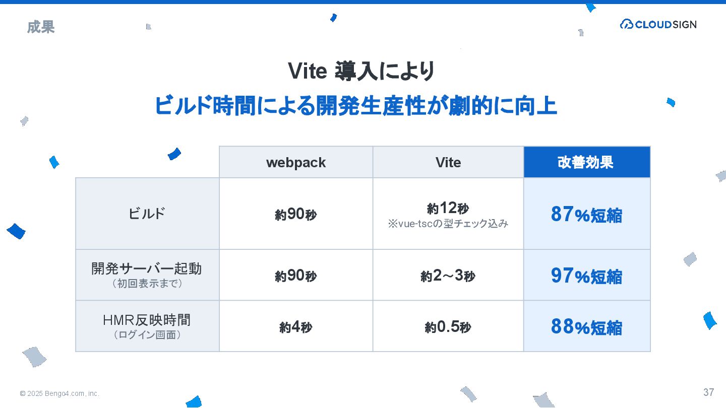 22. © 2025 Bengo4.com, inc. 37 webpack Vite 改善効果 ビルド 約90秒