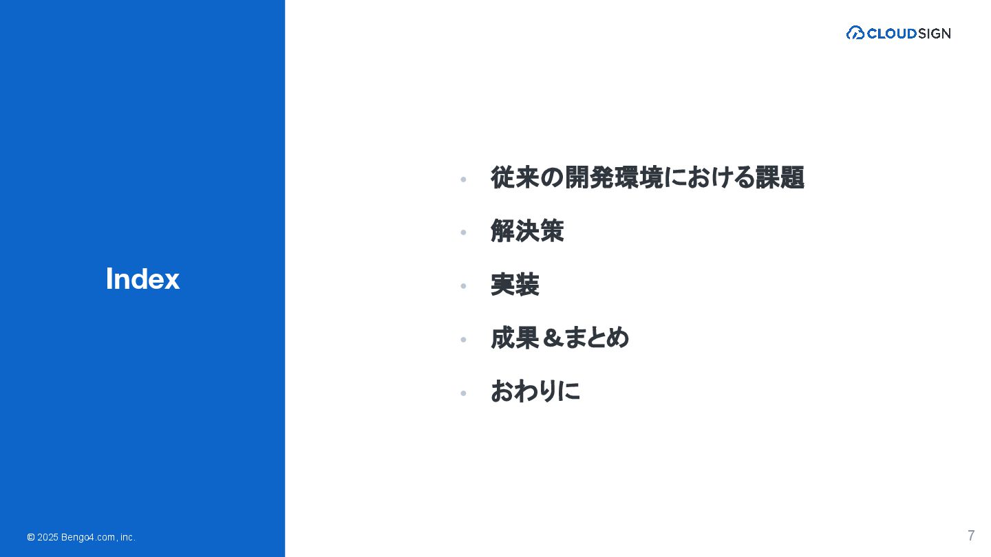 • • • • • 従来の開発環境における課題 解決策 実装 成果&まとめ おわりに