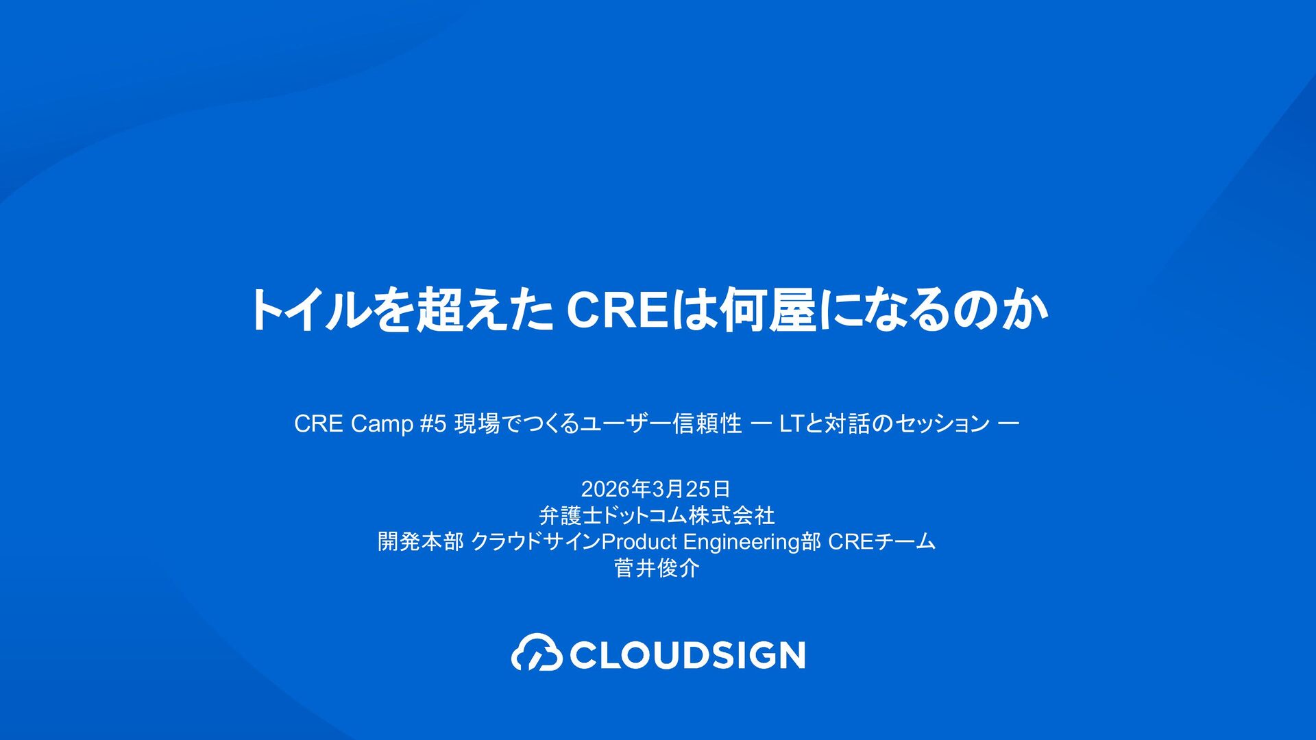 1. トイルを超えた CREは何屋になるのか CRE Camp #5 現場でつくるユーザー信頼性 ー LTと対話のセッション ー 2026年3月25日