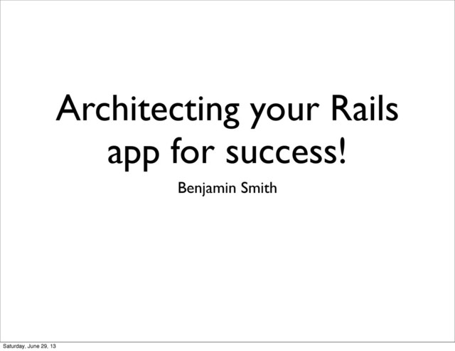 Architecting your Rails app for success! (EuRuKo 2013)