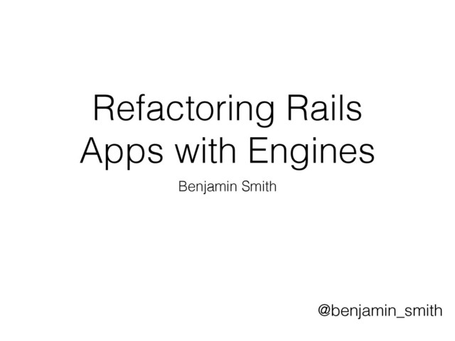 This talk will walk through Benjamin’s experience of refactoring a Rails codebase with zero Engines to an architecture with 40 different Rails Engines. He will also compare and contrast with another Rails application he built from the ground up using an Engines architecture. Not only will this talk include lessons learned, it will also feature concrete step by step instructions needed to smoothly refactor your codebase into an Engines based architecture.
