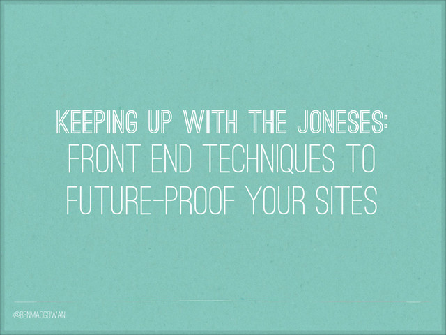 A shorter, more succinct version of this talk where we explore our approach to authoring HTML, CSS and JavaScript in order to better future proof our website.
