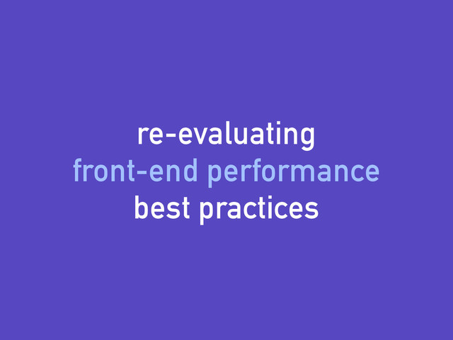 FSTO: Re-evaluating Front-end Peformance Best Practices