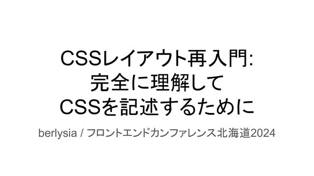 CSSレイアウト再入門: 完全に理解して CSSを記述するために berlysia / フロントエンドカンファレンス北海道2024