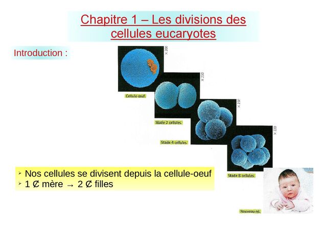 elle-même ; elle se condense. ➢ On peut alors observer que dans ce cas les chromsomes sont formés de deux fils de chromatine : les chromatides. UNE CHROMATIDE UNE CHROMATIDE = le centromère