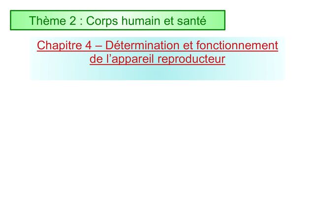 appareils génitaux. Chapitre 4 – Détermination et fonctionnement de l’appareil reproducteur Problème : Comment le sexe génétique permet de mettre en place le phénotype sexuel ?