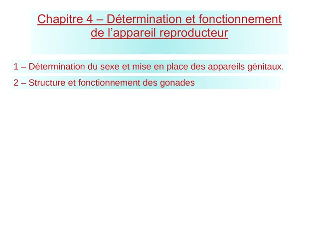 appareils génitaux. Chapitre 4 – Détermination et fonctionnement de l’appareil reproducteur 2 – Structure et fonctionnement des gonades