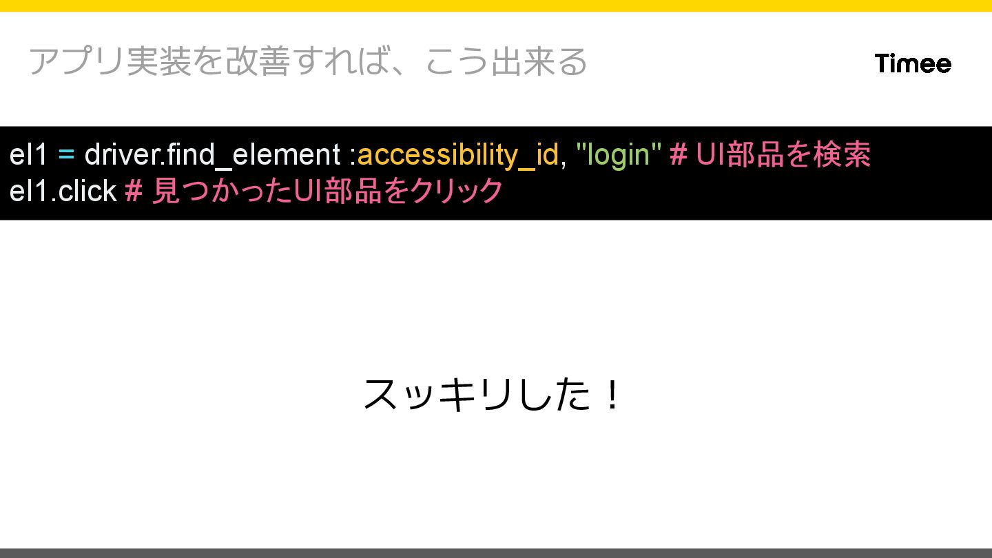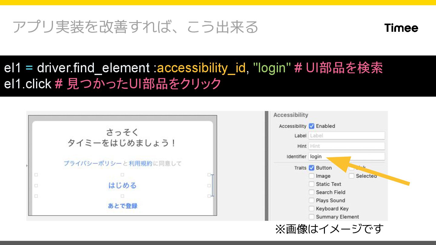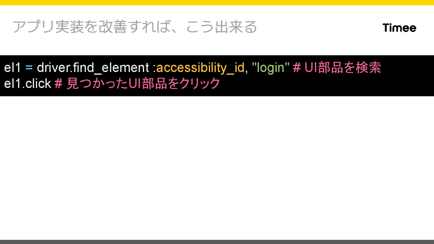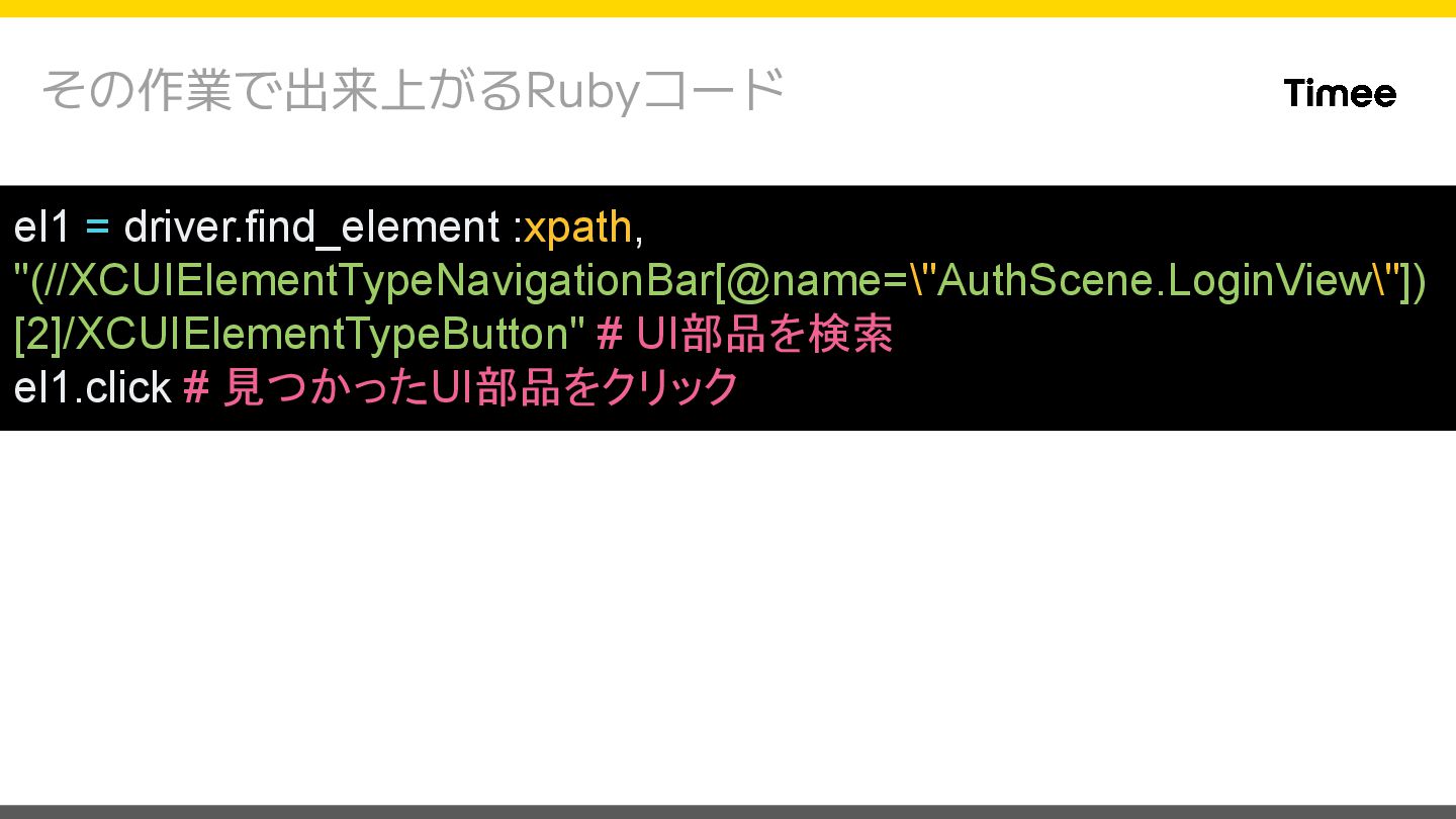 "appium:udid": "{デバイスID}", "appium:autoFillPasswords": false, "appium:language": "ja-JP", "appium:newCommandTimeout": 480000, "appium:app": "{.appファイルのパス}" } $ xcodebuild -scheme {スキーム名} \ -configuration Debug \ -sdk iphoneos \ -archivePath /path/to/app.xcarchive archive { "appium:platformName": "iOS", "appium:automationName": "XCUITest", "appium:udid": "{デバイスID}", "appium:autoFillPasswords": false, "appium:language": "ja-JP", "appium:newCommandTimeout": 480000, "appium:bundleId": "{インストール済のアプリの BundleID}" } アプリを新規インストールする場合 インストール済のアプリを利用する場合