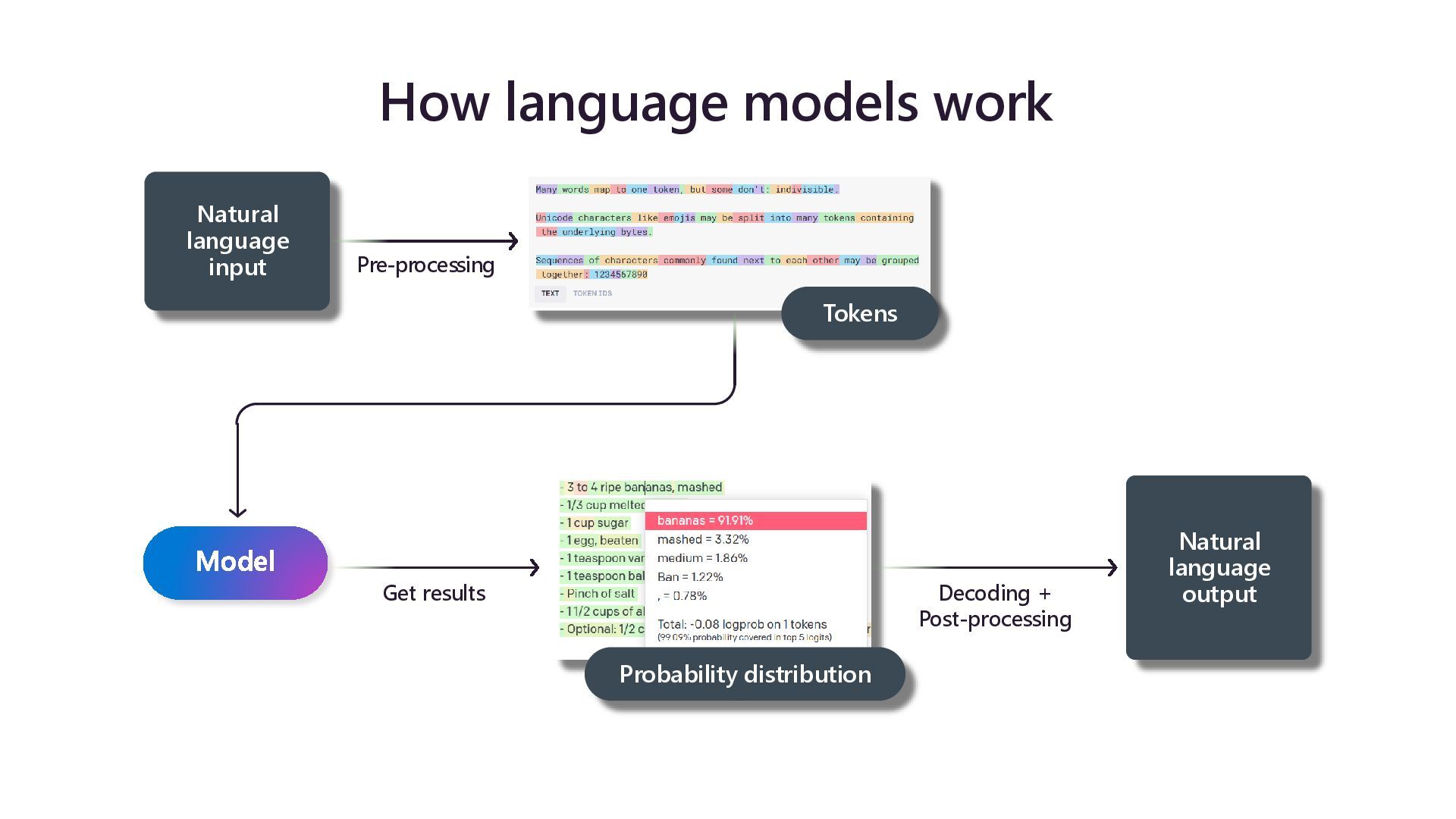 distribution Natural language output Decoding + Post-processing Get results Pre-processing