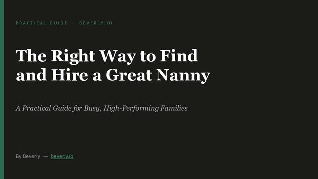 U I D E · B E V E R L Y . I O The Right Way to Find and Hire a Great Nanny A Practical Guide for Busy, High-Performing Families By Beverly — beverly.io